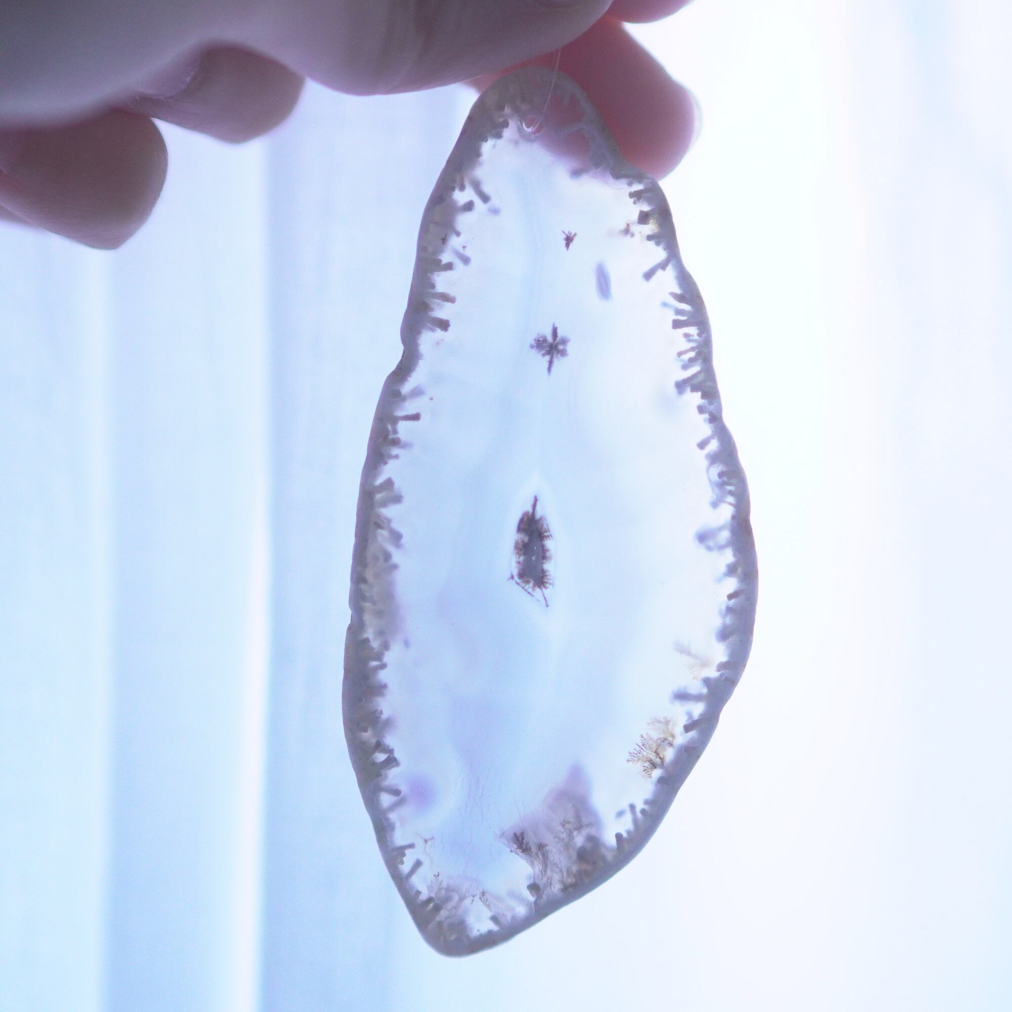 ✧✧✧瑪瑙の濃い色は染色によるもので、水に濡れたり布で擦ると多少色落ちします。飾るものなので大丈夫かと思いますが白いお洋服などには触れないようにされてください。汚れが気になる時は若干の色落ち前提で水を軽く含ませた布やティッシュでやさしく拭いていただくことは大丈夫です。また、画像のような細かなヒビ・カケはスライスメノウの加工上かなり多くあるので、チャイムとしての機能や全体の外観を著しく損なうものを除き、見た目の完璧さ<音色の響き重視で選んで使用しております、よろしくお願い致します✧✧✧