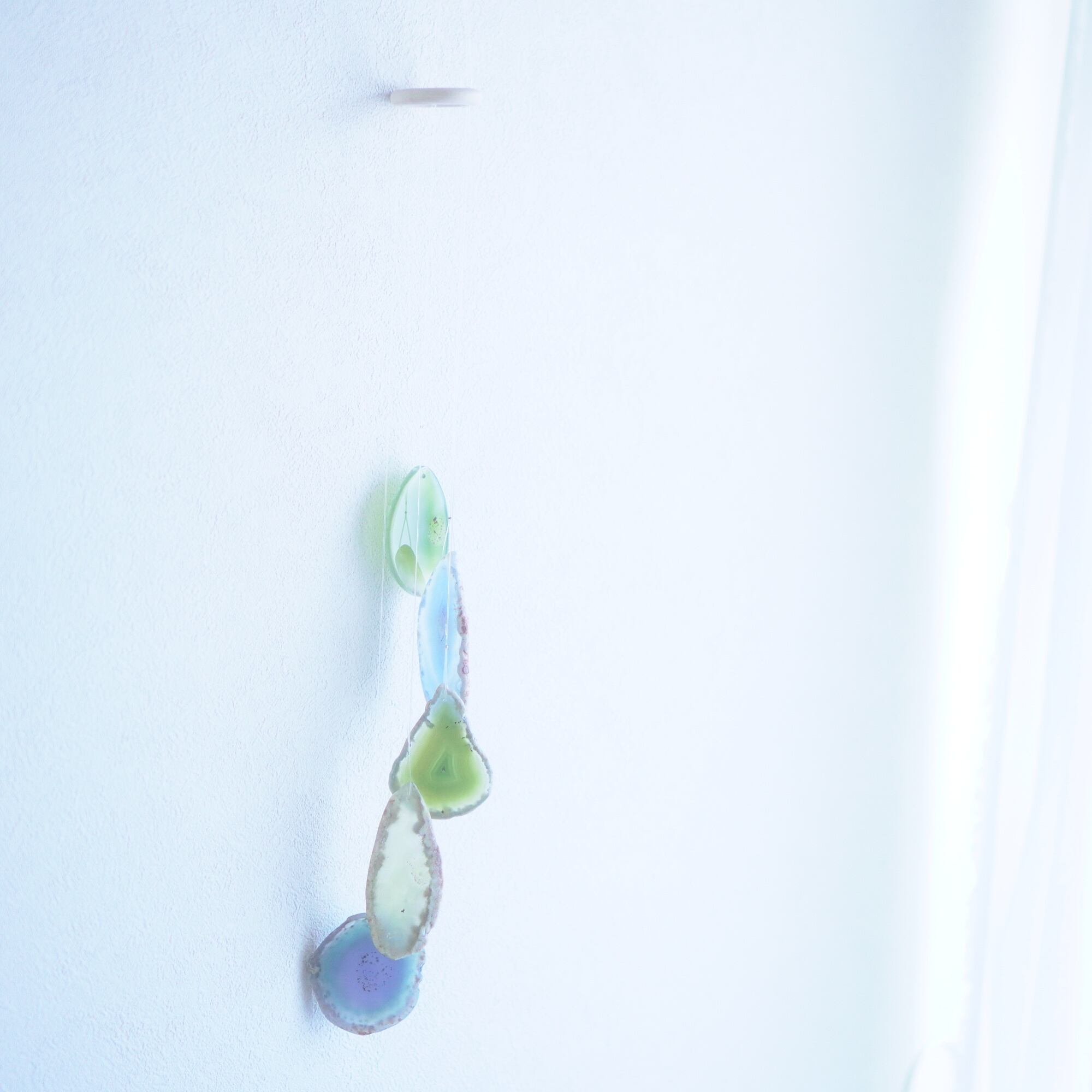 そしてカーテン越しではなく直射日光を当てた際のサンキャッチャーとしてのチャイムも、美しい光をお部屋の中に運んでくれます。