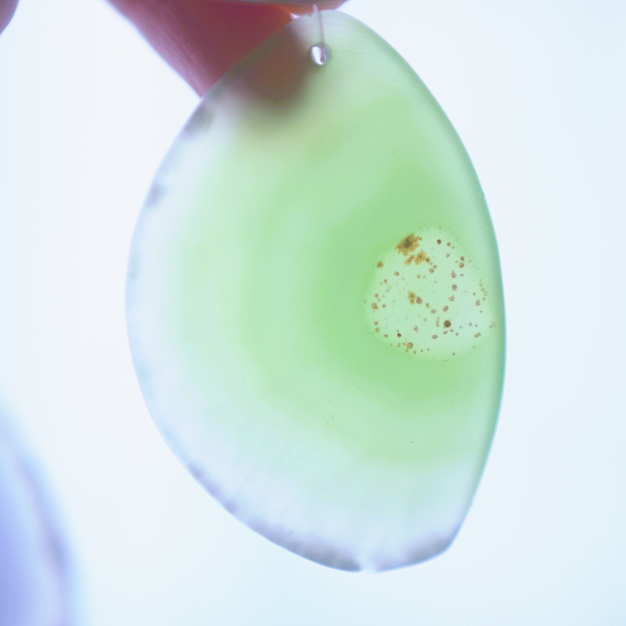 ✧✧✧染色の石なので耐光性(光による経年でのカラー変化の耐性)に優れているわけではなく一日の中で長時間強い日光に当たるような場所に飾られるのはおすすめしないのですが、陽光に透かした時にだけ真価を発揮する美しさがありますので、是非たまに翳したりして光と一緒にお楽しみいただけたらと思っております。特に濃い鮮やかな色など、気になられる場合は、日光のあまり当たらない場所に飾っていただけたらと思います✧✧✧