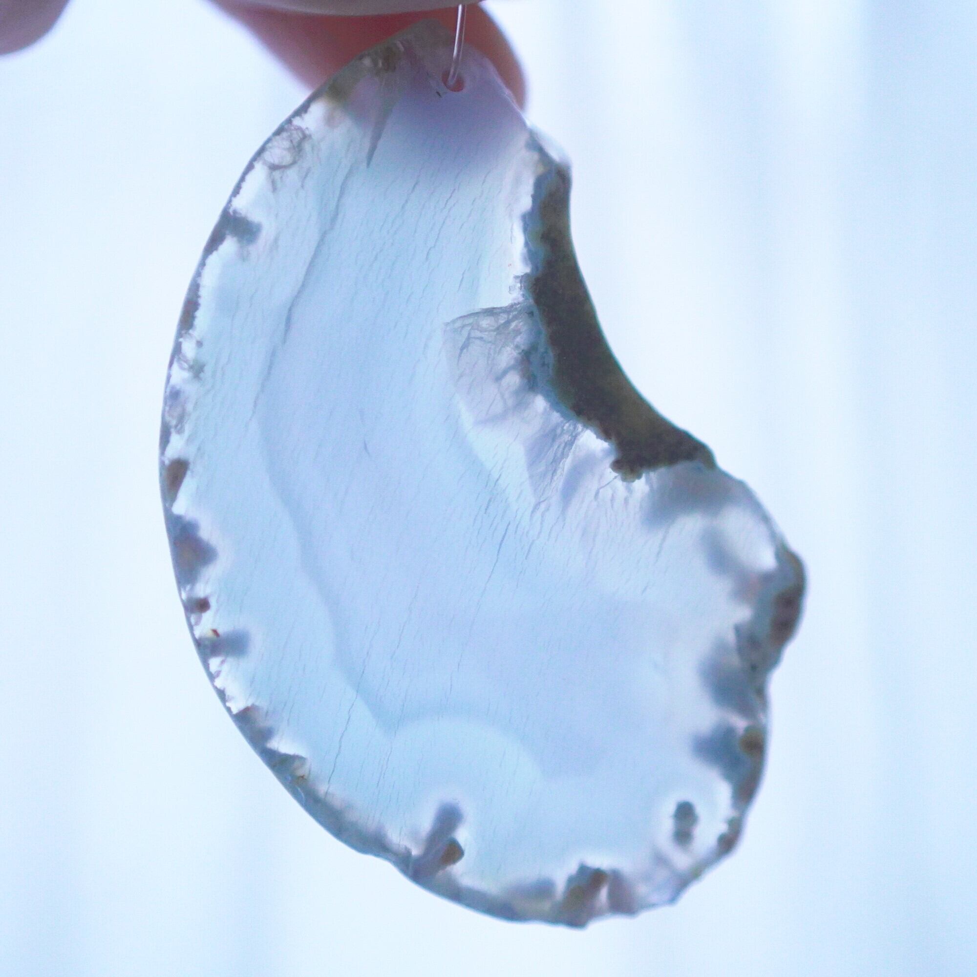 ✧✧✧瑪瑙の濃い色は染色によるもので、水に濡れたり布で擦ると多少色落ちします。飾るものなので大丈夫かと思いますが白いお洋服などには触れないようにされてください。汚れが気になる時は若干の色落ち前提で水を軽く含ませた布やティッシュでやさしく拭いていただくことは大丈夫です。また、画像のような細かなヒビ・カケはスライスメノウの加工上かなり多くあるので、チャイムとしての機能や全体の外観を著しく損なうものを除き、見た目の完璧さ<音色の響き重視で選んで使用しております、よろしくお願い致します✧✧✧