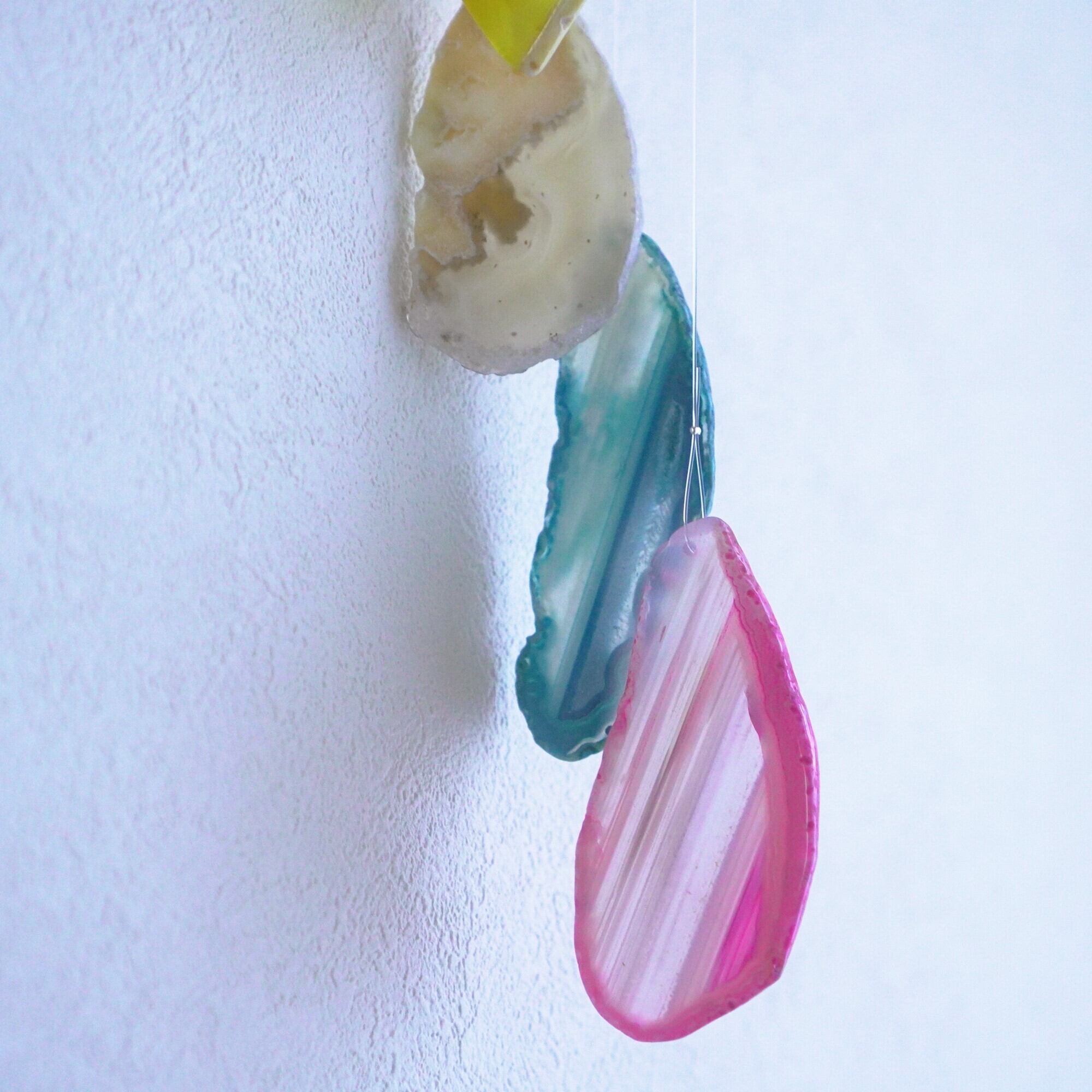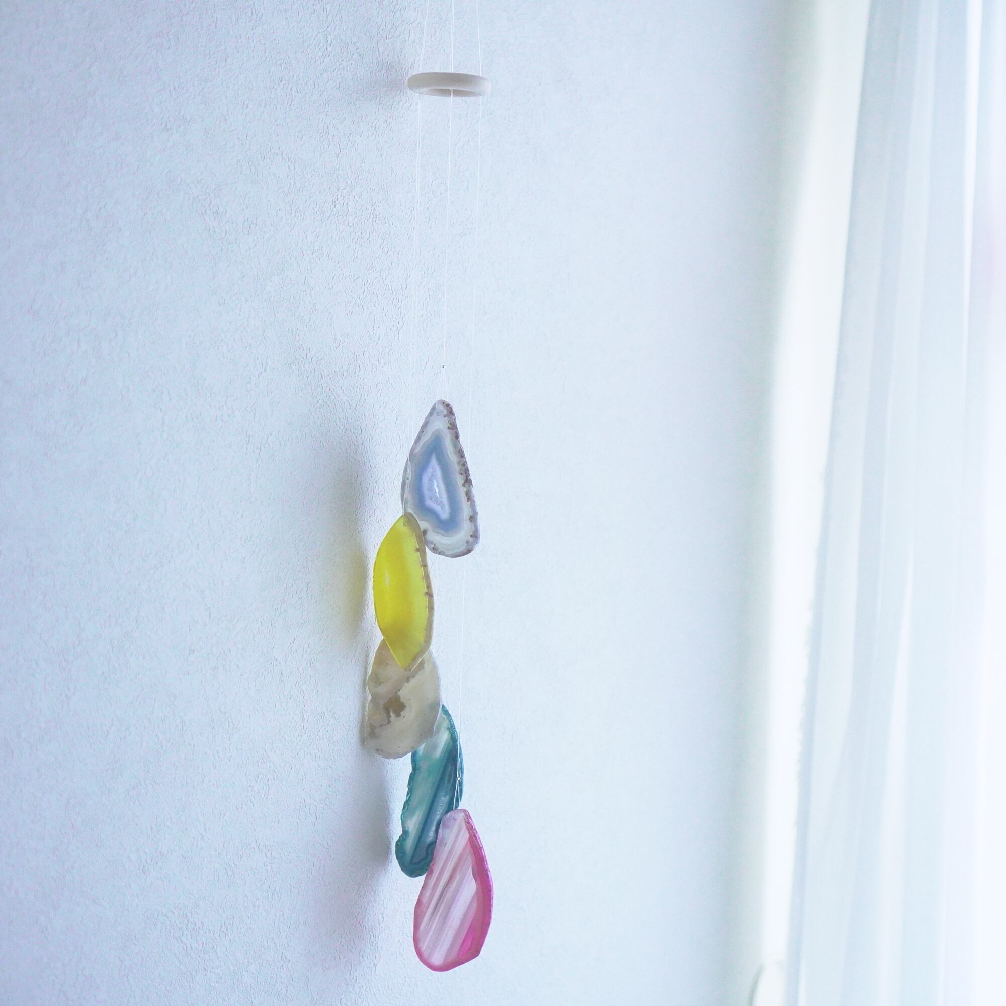 連なるアゲートが風を受けて揺れるとチリンチリン、美しい響きの音が鳴りとても癒されます。