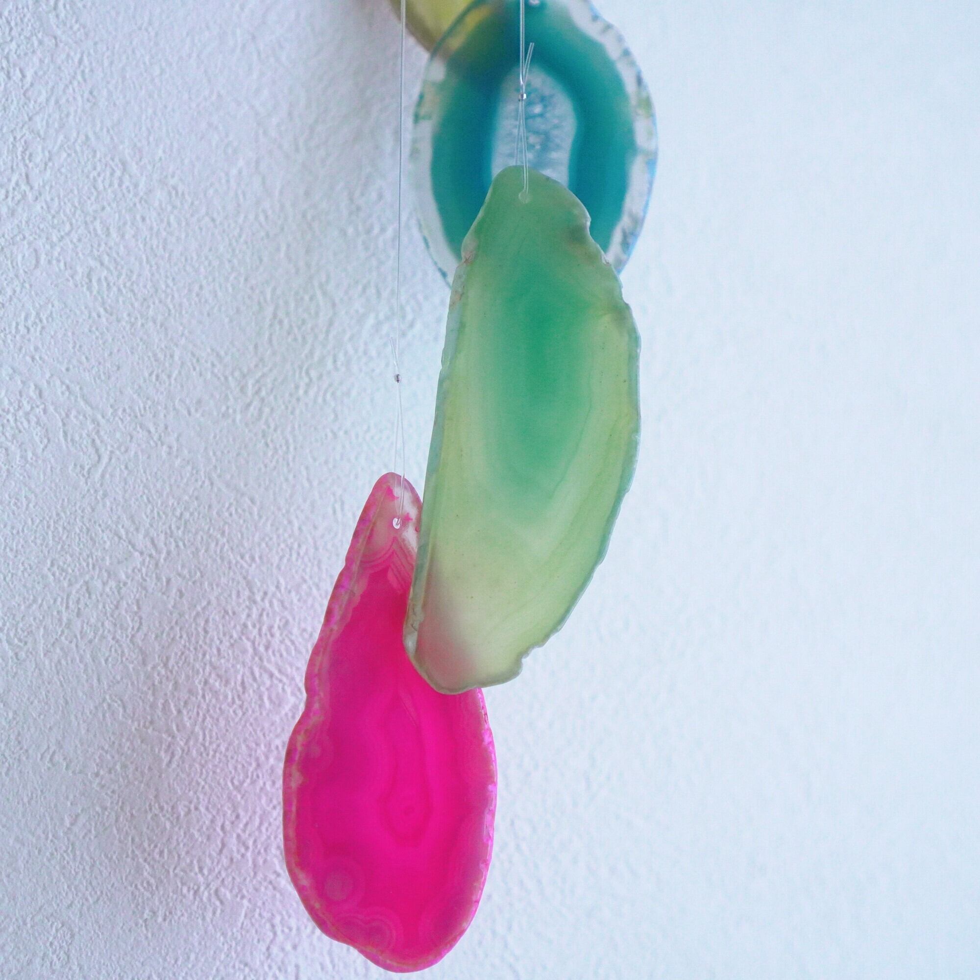 連なるアゲートが風を受けて揺れるとチリンチリン、美しい響きの音が鳴りとても癒されます。