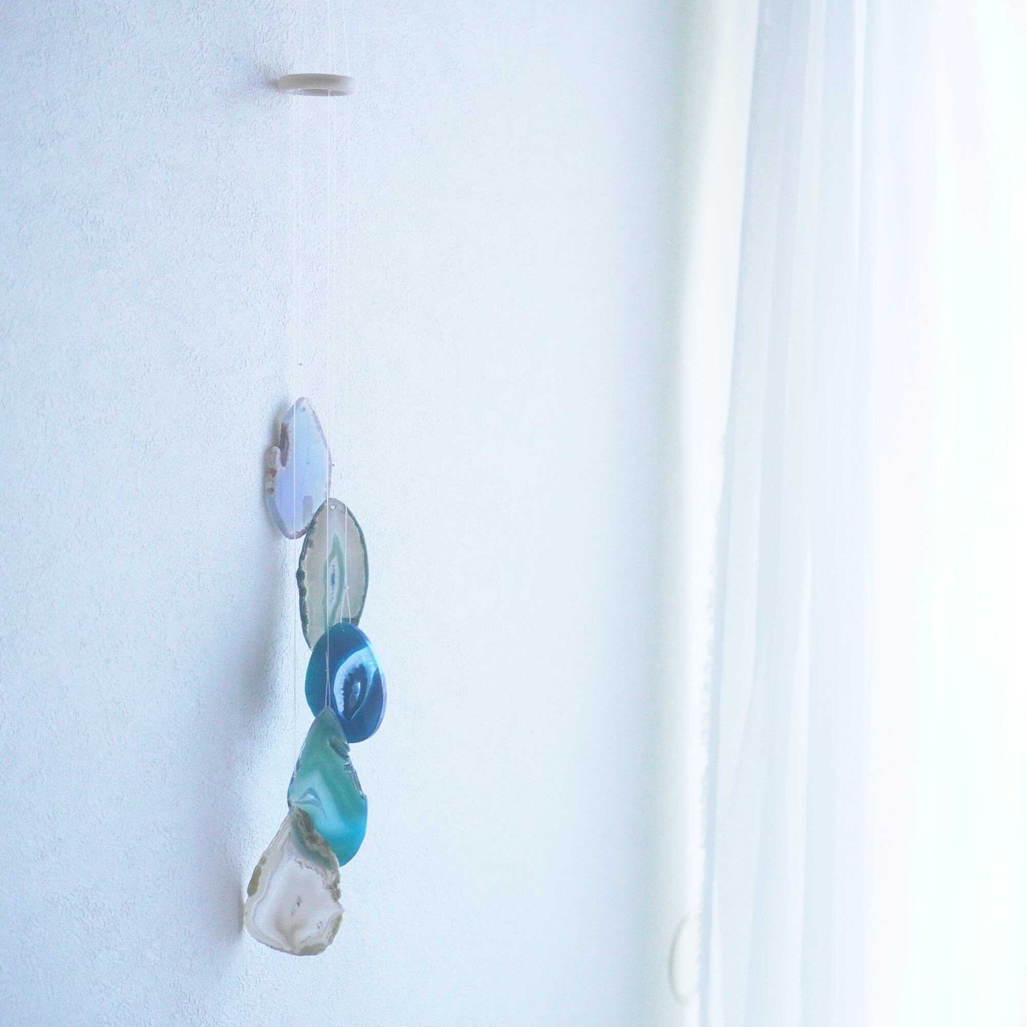 連なるアゲートが風を受けて揺れるとチリンチリン、美しい響きの音が鳴りとても癒されます。