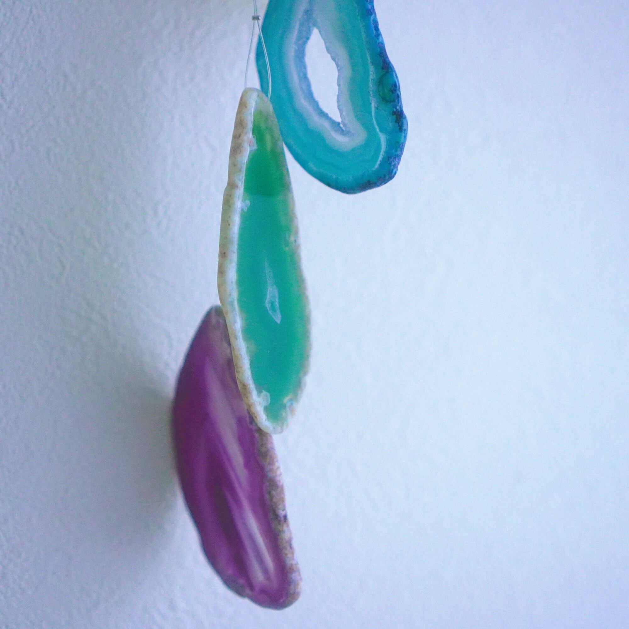 Agate Slice , Natural Wood , Nylon Cord , Metal
