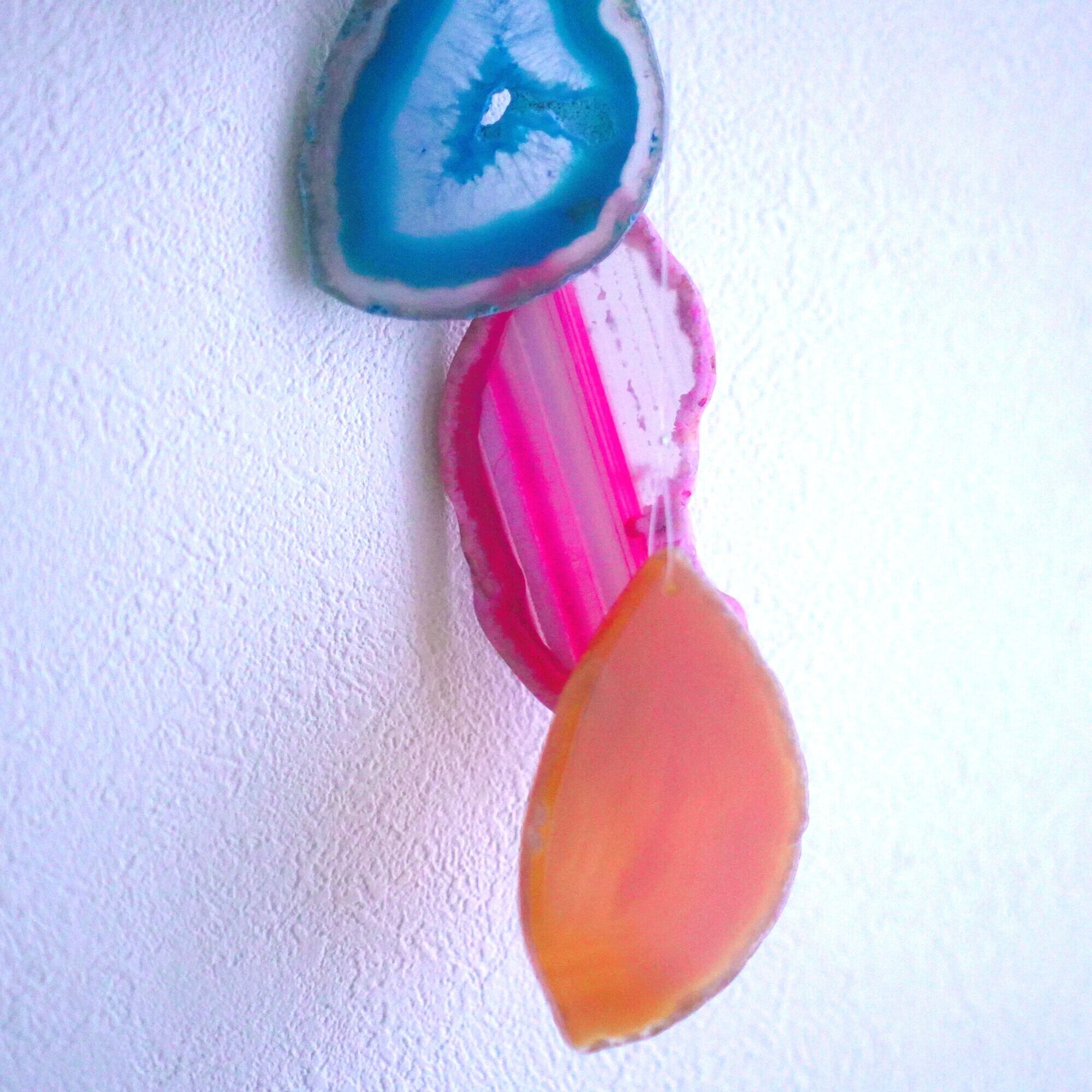 ✧✧✧瑪瑙の濃い色は染色によるもので、水に濡れたり布で擦ると多少色落ちします。飾るものなので大丈夫かと思いますが白いお洋服などには触れないようにされてください。汚れが気になる時は若干の色落ち前提で水を軽く含ませた布やティッシュでやさしく拭いていただくことは大丈夫です。また、画像のような細かなヒビ・カケはスライスメノウの加工上かなり多くあるので、チャイムとしての機能や全体の外観を著しく損なうものを除き、見た目の完璧さ<音色の響き重視で選んで使用しております、よろしくお願い致します✧✧✧