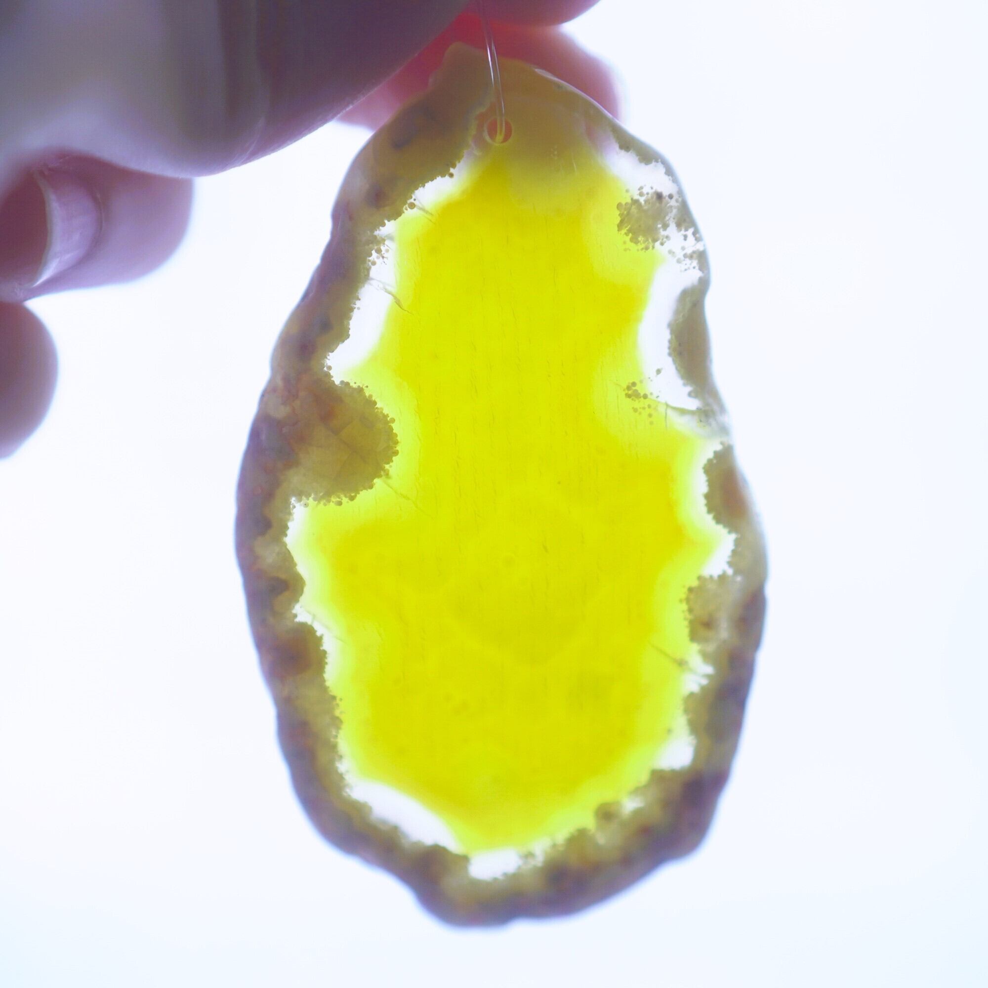 ✧✧✧染色の石なので耐光性(光による経年でのカラー変化の耐性)に優れているわけではなく一日の中で長時間強い日光に当たるような場所に飾られるのはおすすめしないのですが、陽光に透かした時にだけ真価を発揮する美しさがありますので、是非たまに翳したりして光と一緒にお楽しみいただけたらと思っております。特に濃い鮮やかな色など、気になられる場合は、日光のあまり当たらない場所に飾っていただけたらと思います✧✧✧