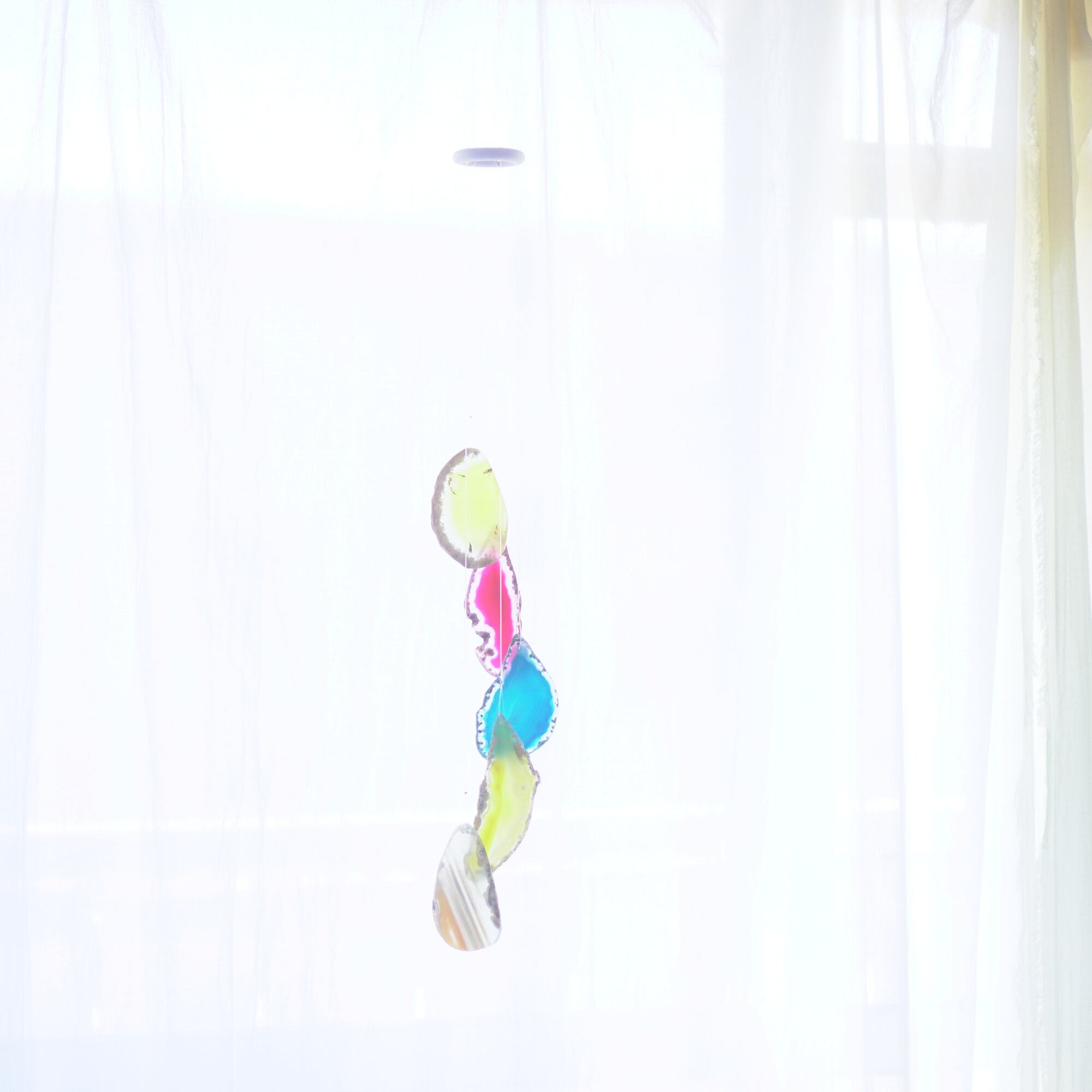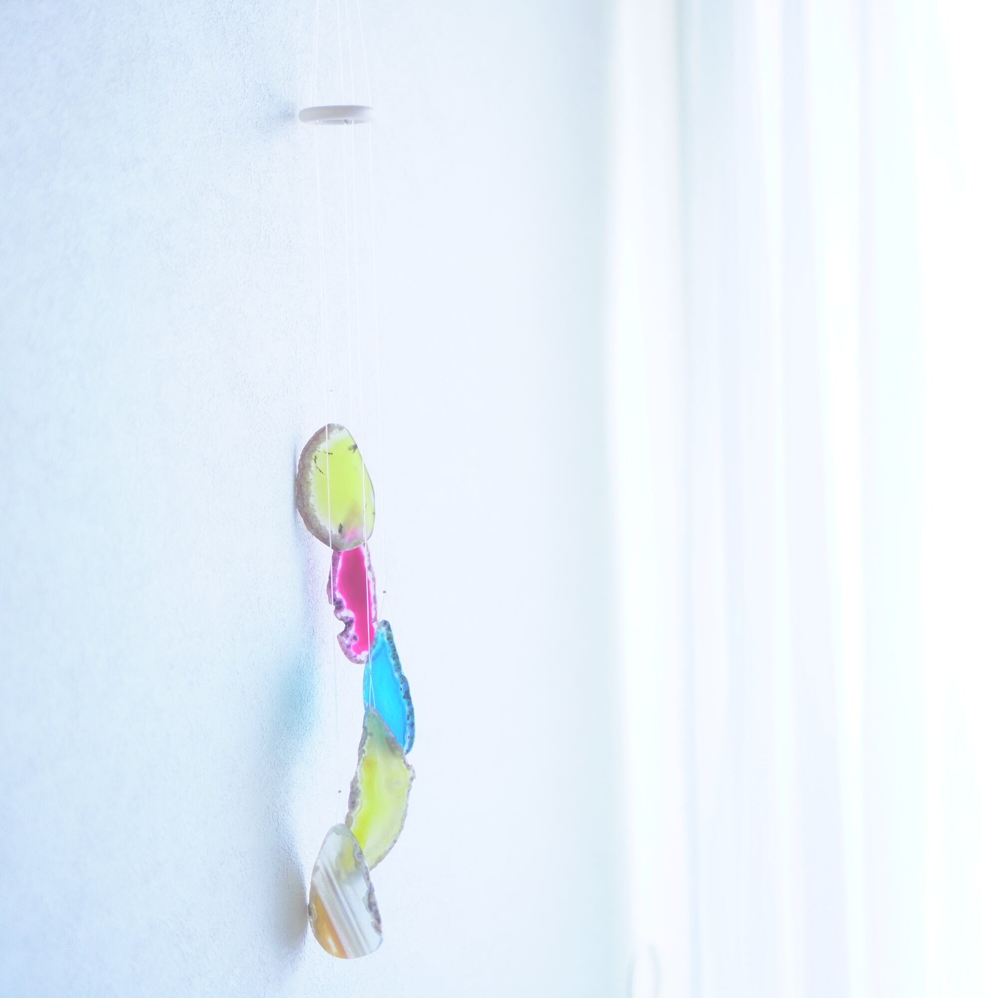 そしてカーテン越しではなく直射日光を当てた際のサンキャッチャーとしてのチャイムも、美しい光をお部屋の中に運んでくれます。