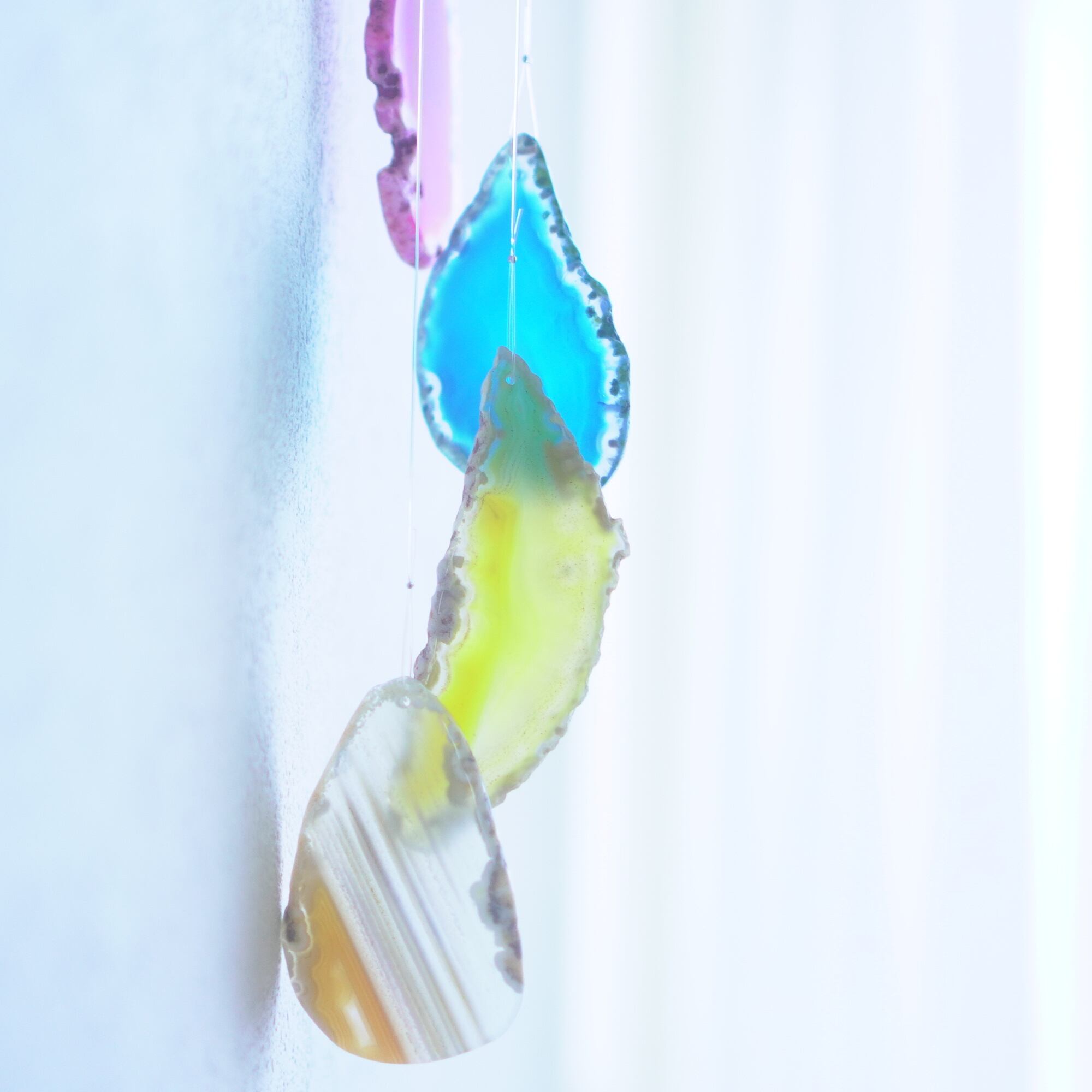 連なるアゲートが風を受けて揺れるとチリンチリン、美しい響きの音が鳴りとても癒されます。