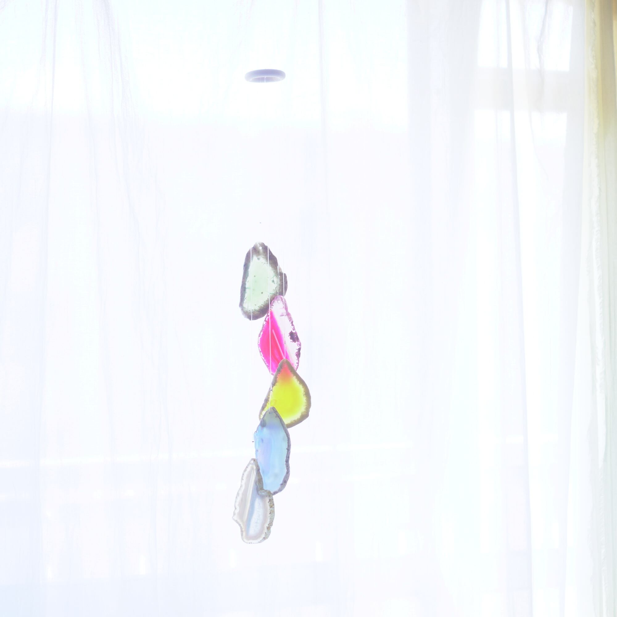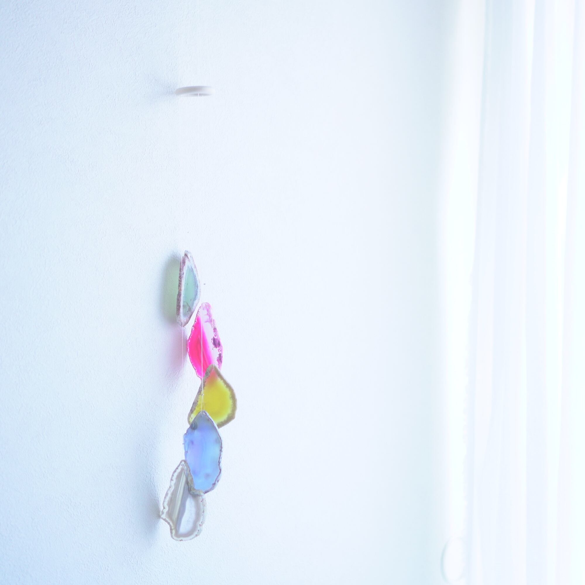 そしてカーテン越しではなく直射日光を当てた際のサンキャッチャーとしてのチャイムも、美しい光をお部屋の中に運んでくれます。