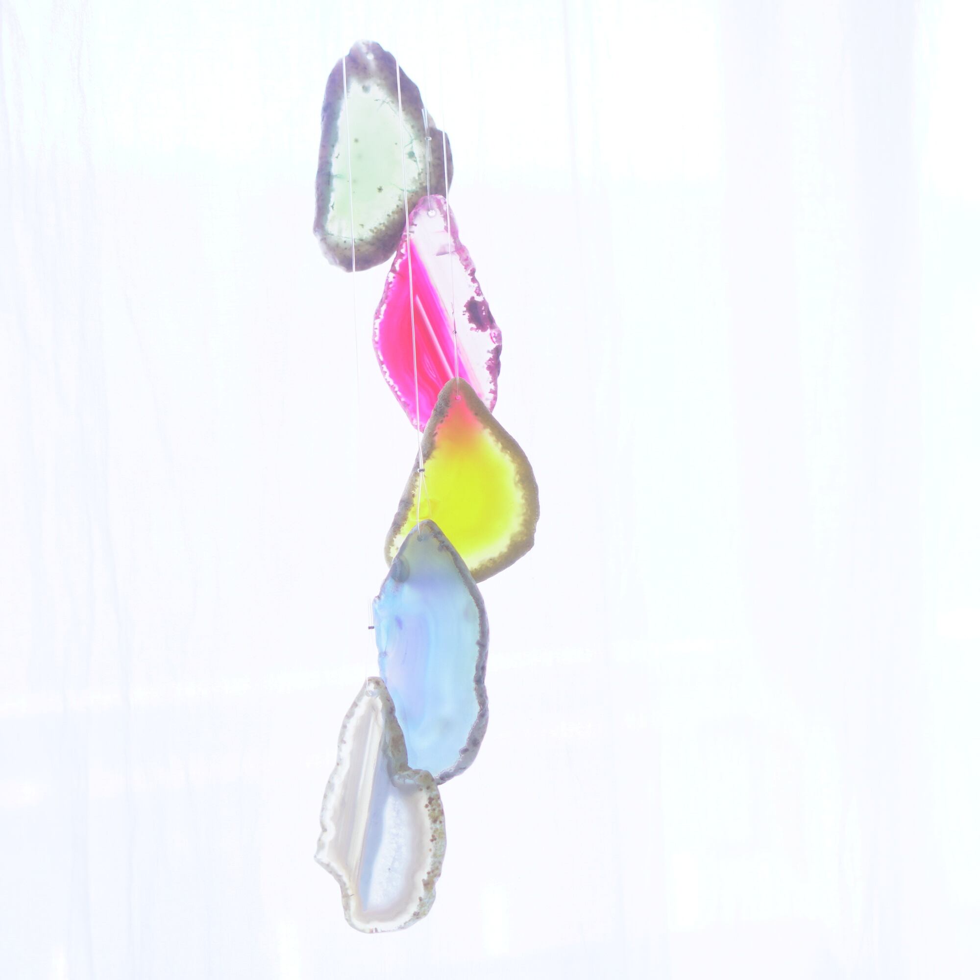 連なるアゲートが風を受けて揺れるとチリンチリン、美しい響きの音が鳴りとても癒されます。