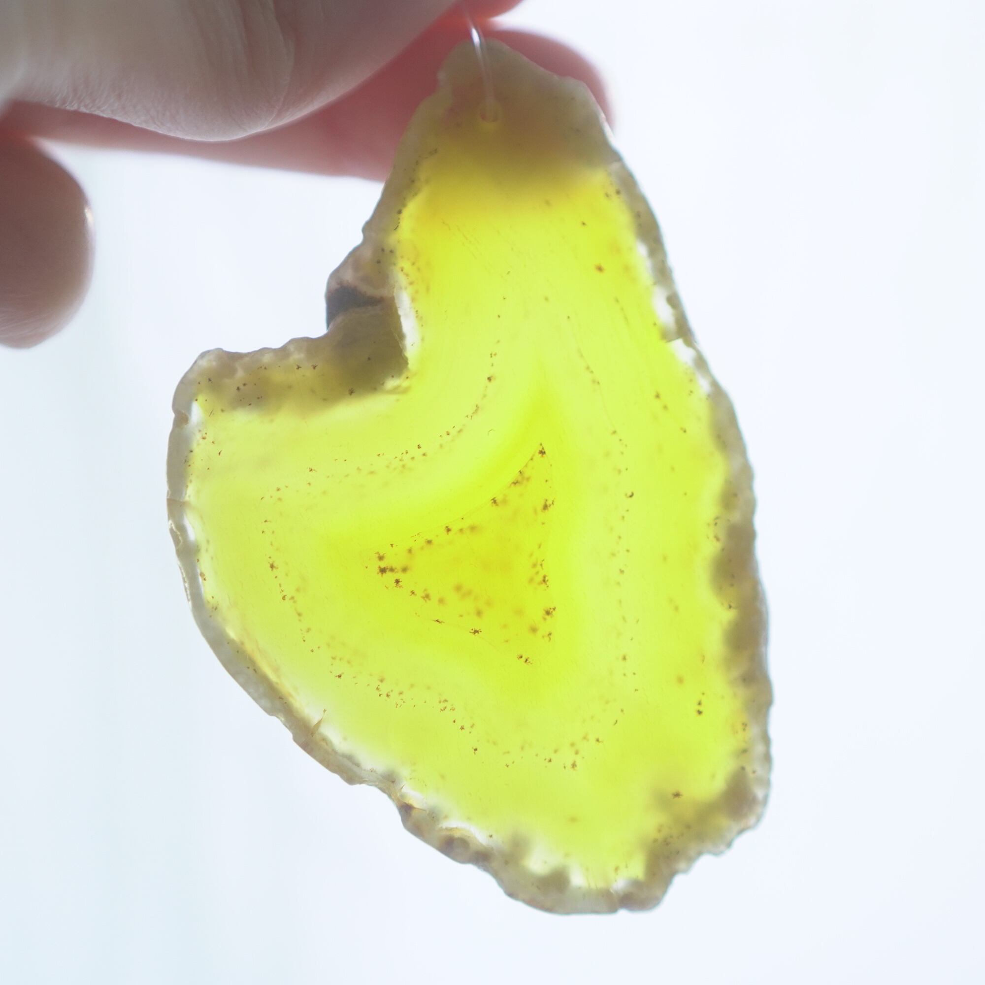 ✧✧✧染色の石なので耐光性(光による経年でのカラー変化の耐性)に優れているわけではなく一日の中で長時間強い日光に当たるような場所に飾られるのはおすすめしないのですが、陽光に透かした時にだけ真価を発揮する美しさがありますので、是非たまに翳したりして光と一緒にお楽しみいただけたらと思っております。特に濃い鮮やかな色など、気になられる場合は、日光のあまり当たらない場所に飾っていただけたらと思います✧✧✧