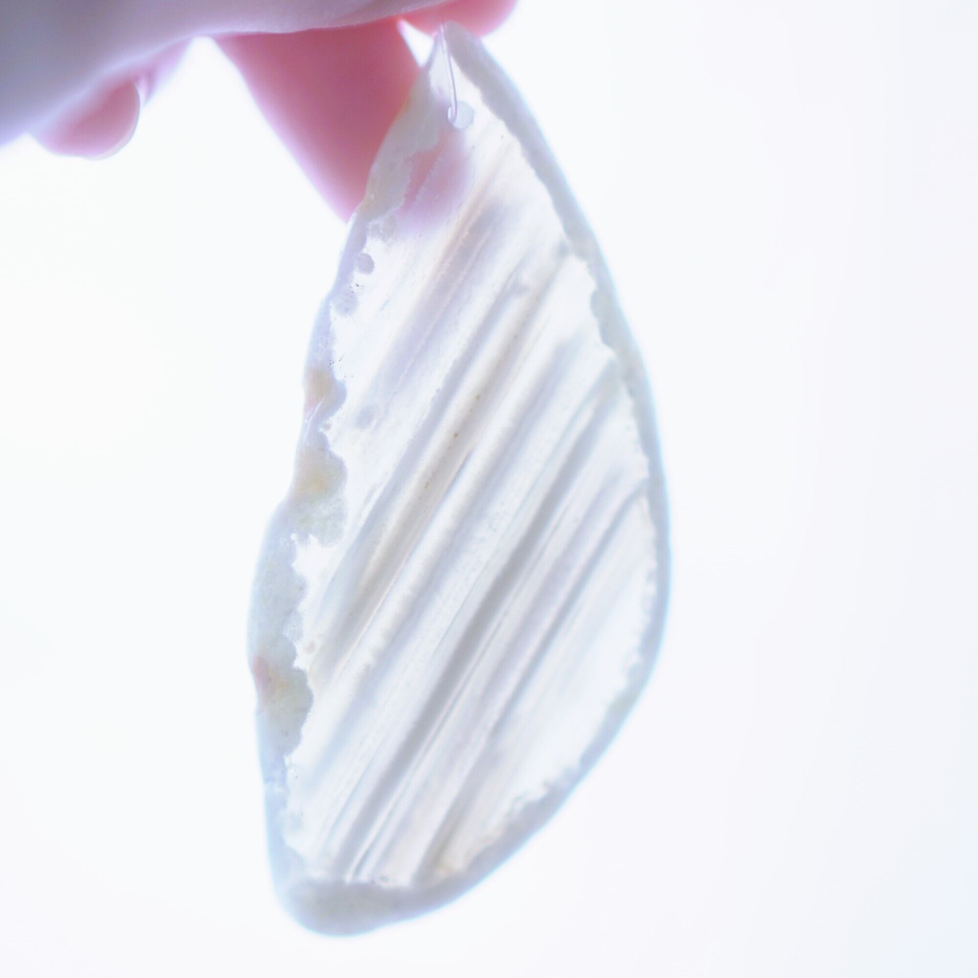 また、透明感が魅力でもあるので、窓際で自然光を通した際と、室内灯の下で光を通さずに見る際、異なる表情を見せてくれますのでその違いも是非お楽しみください。(写真の前半は自然光を透かせたもので、後半の4枚は光を透かさず壁を背景に撮影したものです)