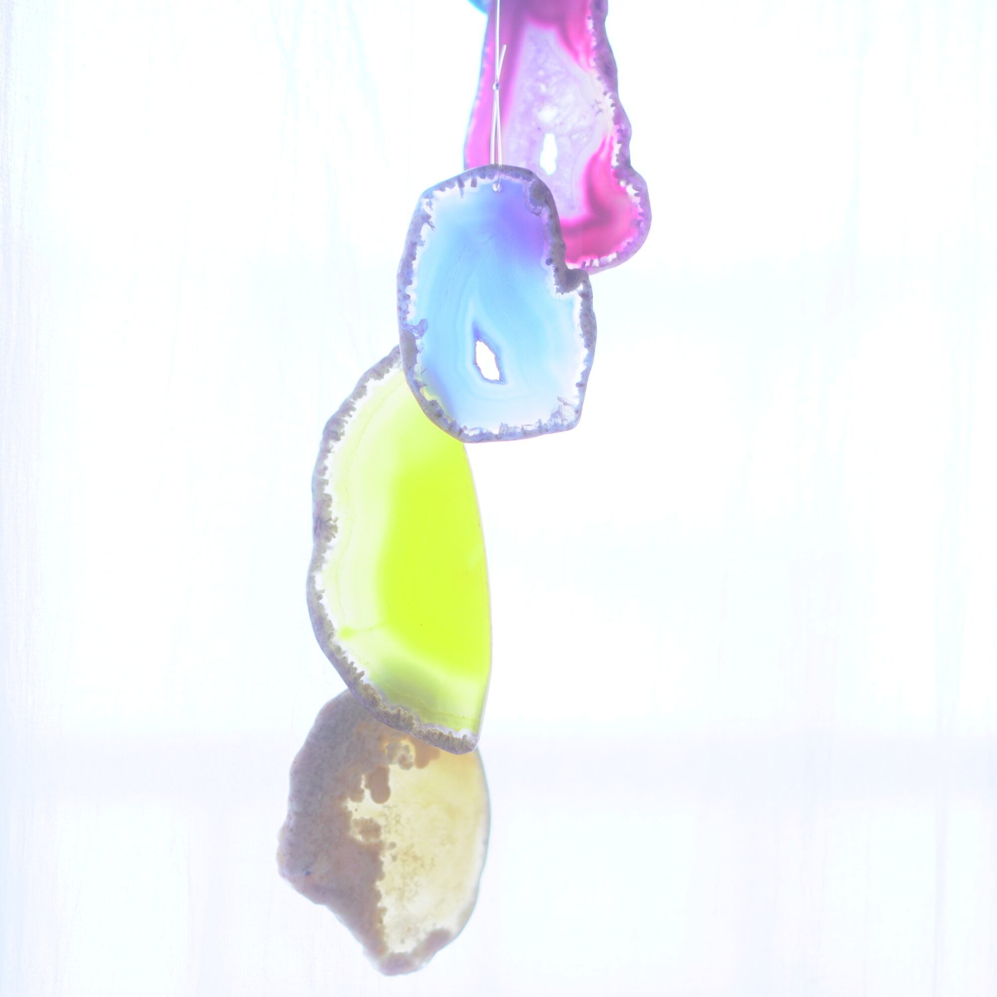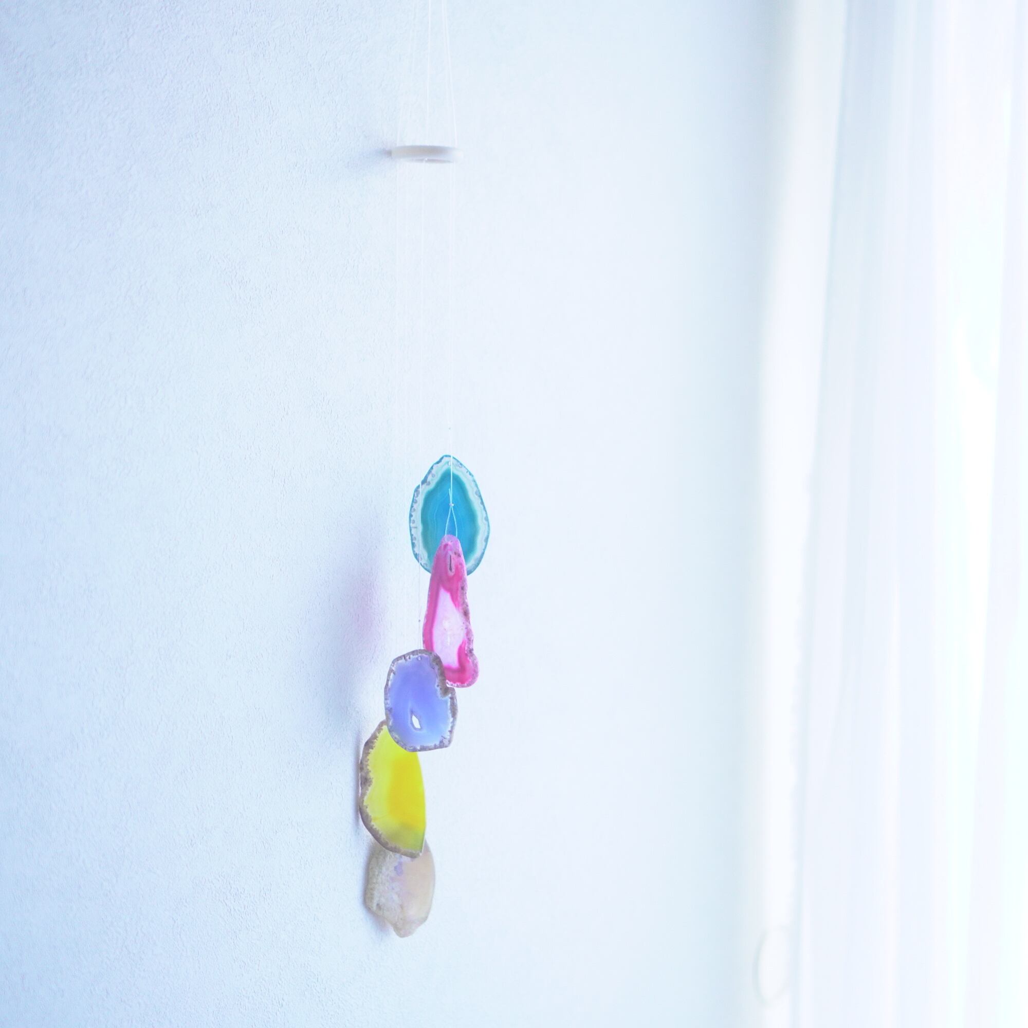 連なるアゲートが風を受けて揺れるとチリンチリン、美しい響きの音が鳴りとても癒されます。