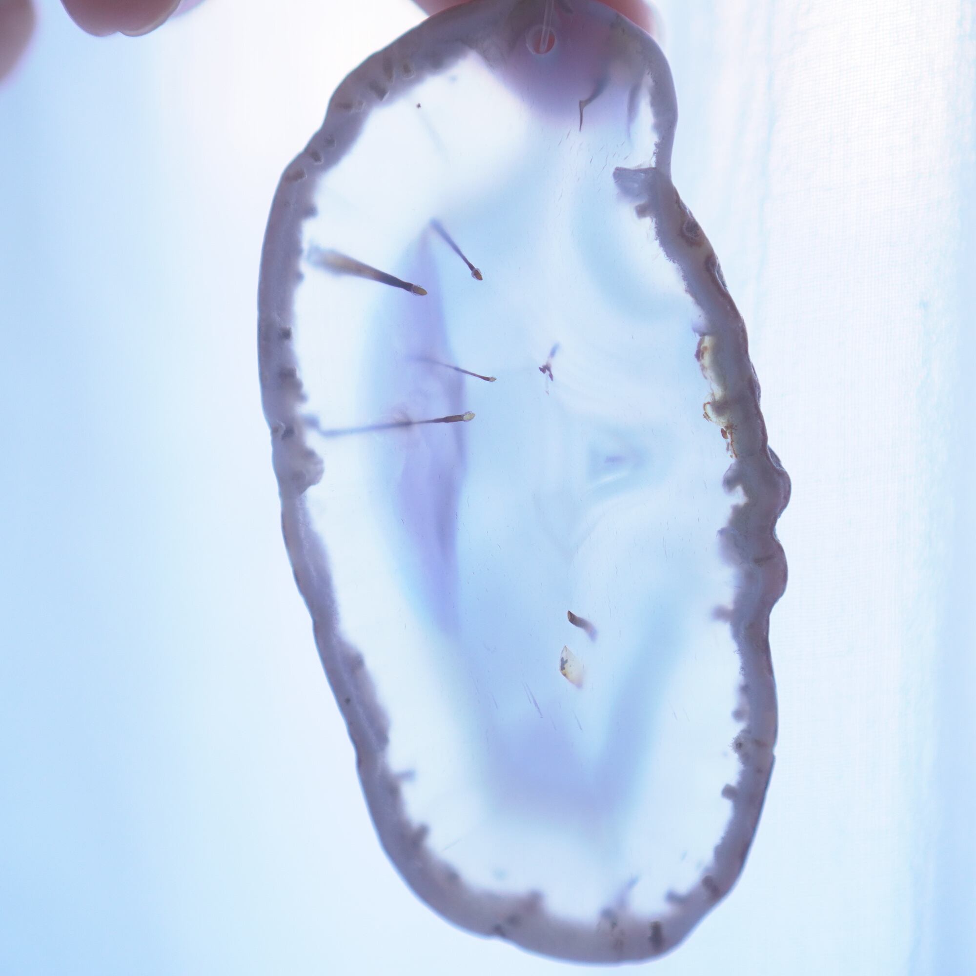 また、透明感が魅力でもあるので、窓際で自然光を通した際と、室内灯の下で光を通さずに見る際、異なる表情を見せてくれますのでその違いも是非お楽しみください。(写真の前半は自然光を透かせたもので、後半の4枚は光を透かさず壁を背景に撮影したものです)
