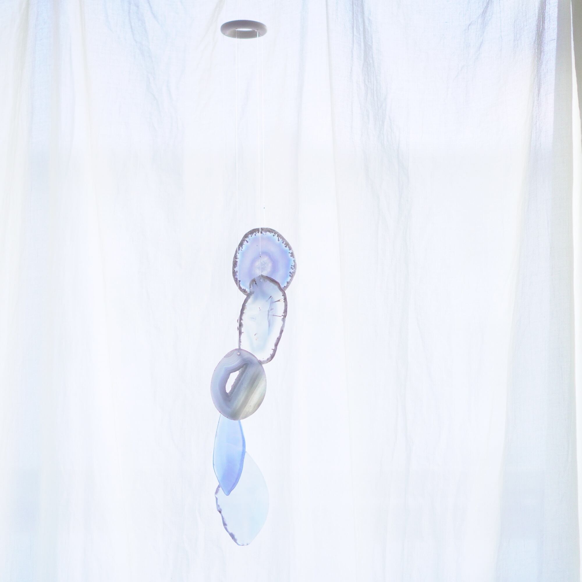 連なるアゲートが風を受けて揺れるとチリンチリン、美しい響きの音が鳴りとても癒されます。