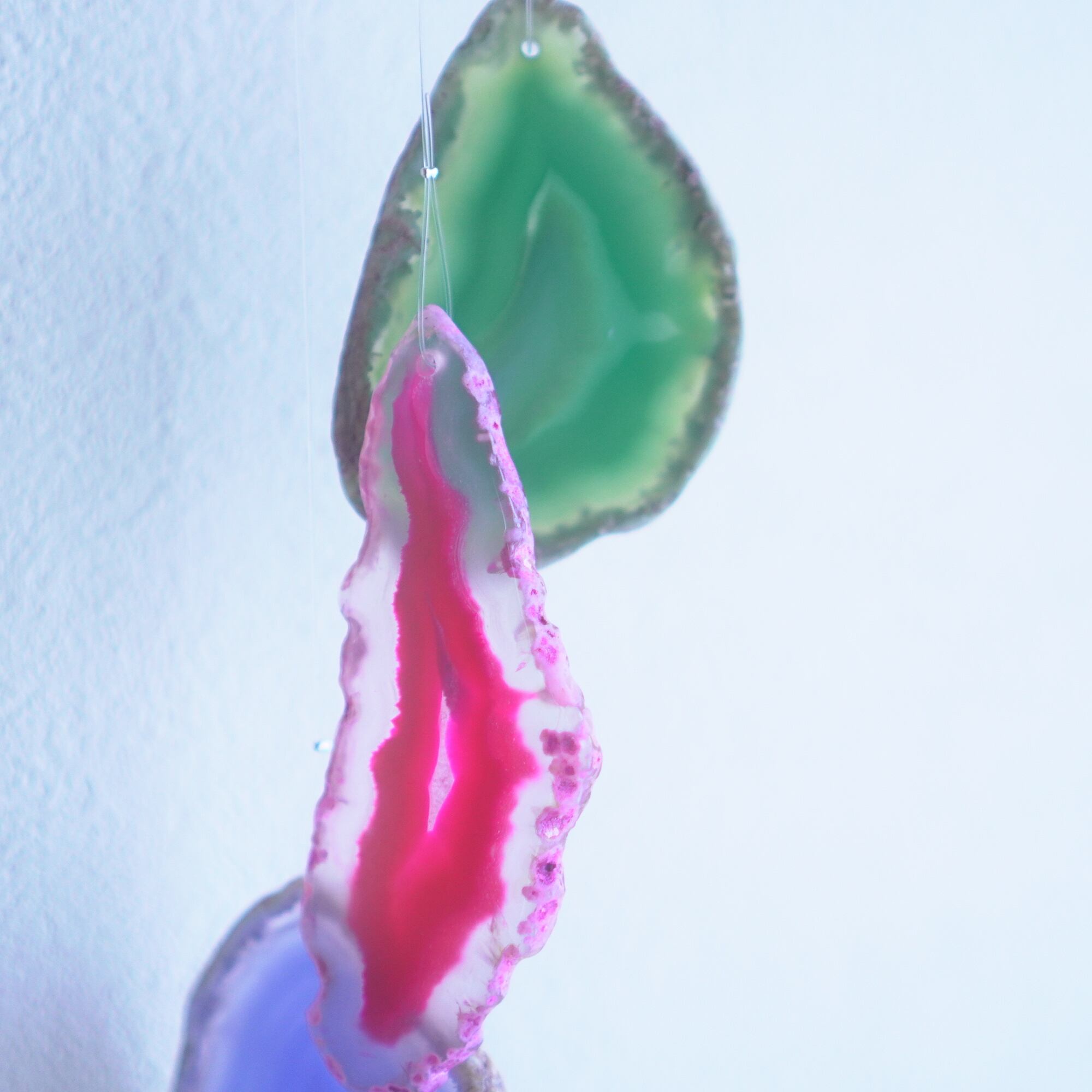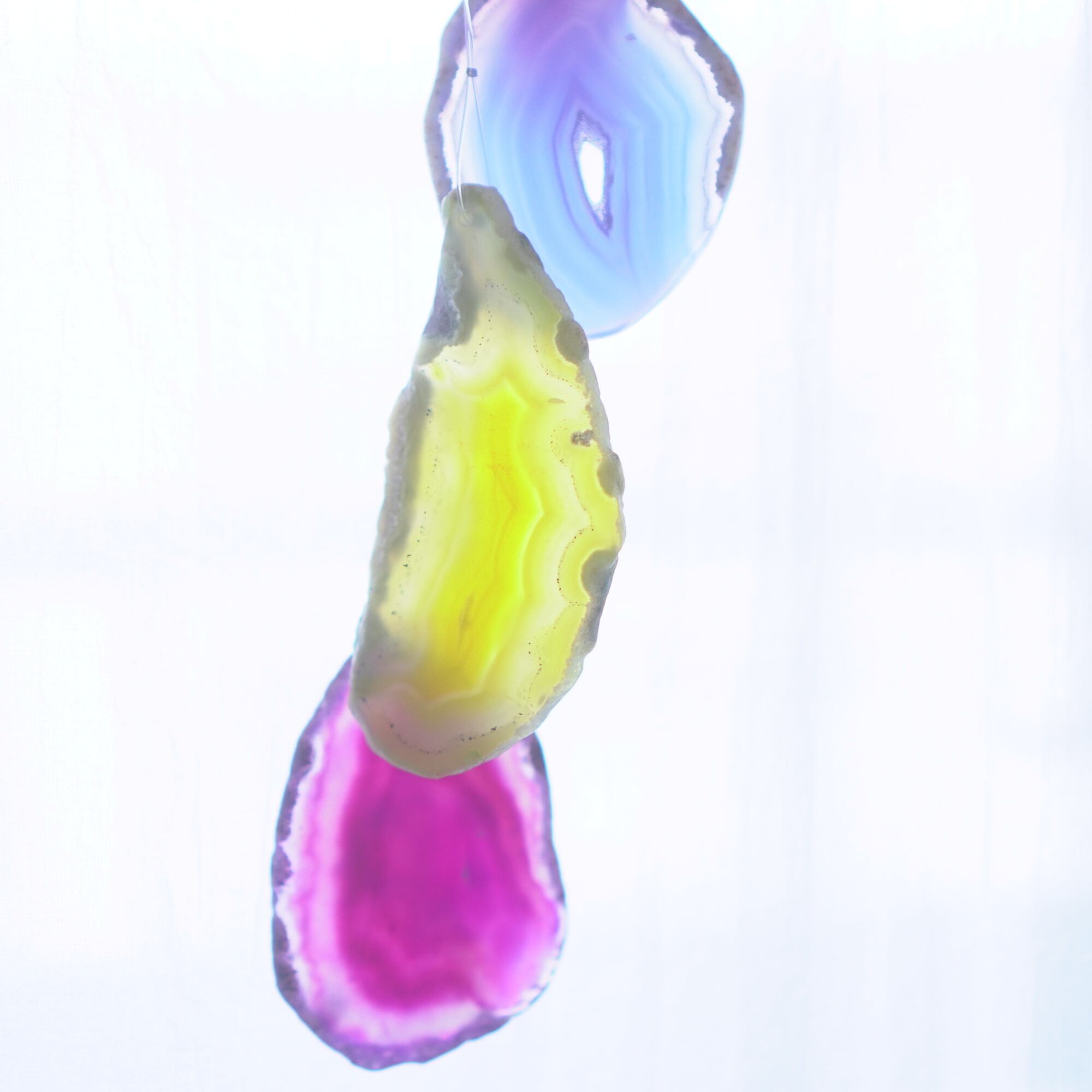 ✧✧✧染色の石なので耐光性(光による経年でのカラー変化の耐性)に優れているわけではなく一日の中で長時間強い日光に当たるような場所に飾られるのはおすすめしないのですが、陽光に透かした時にだけ真価を発揮する美しさがありますので、是非たまに翳したりして光と一緒にお楽しみいただけたらと思っております。特に濃い鮮やかな色など、気になられる場合は、日光のあまり当たらない場所に飾っていただけたらと思います✧✧✧