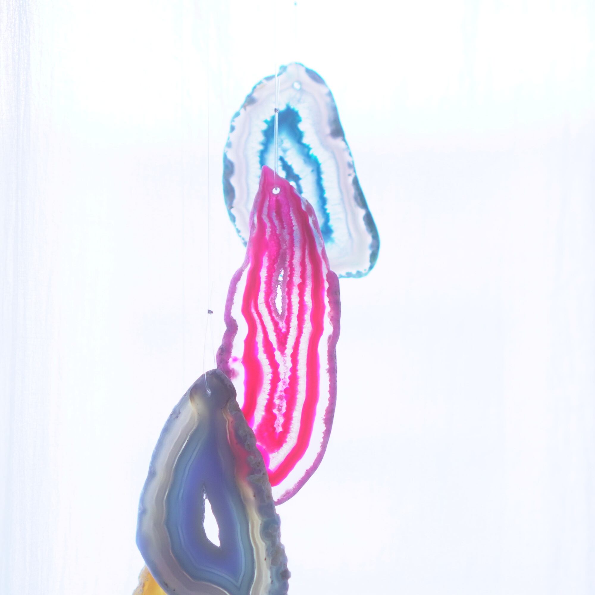 連なるアゲートが風を受けて揺れるとチリンチリン、美しい響きの音が鳴りとても癒されます。
