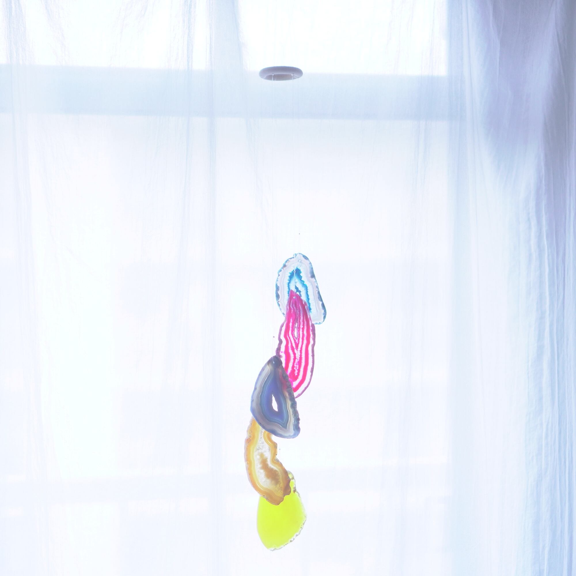 そしてカーテン越しではなく直射日光を当てた際のサンキャッチャーとしてのチャイムも、美しい光をお部屋の中に運んでくれます。