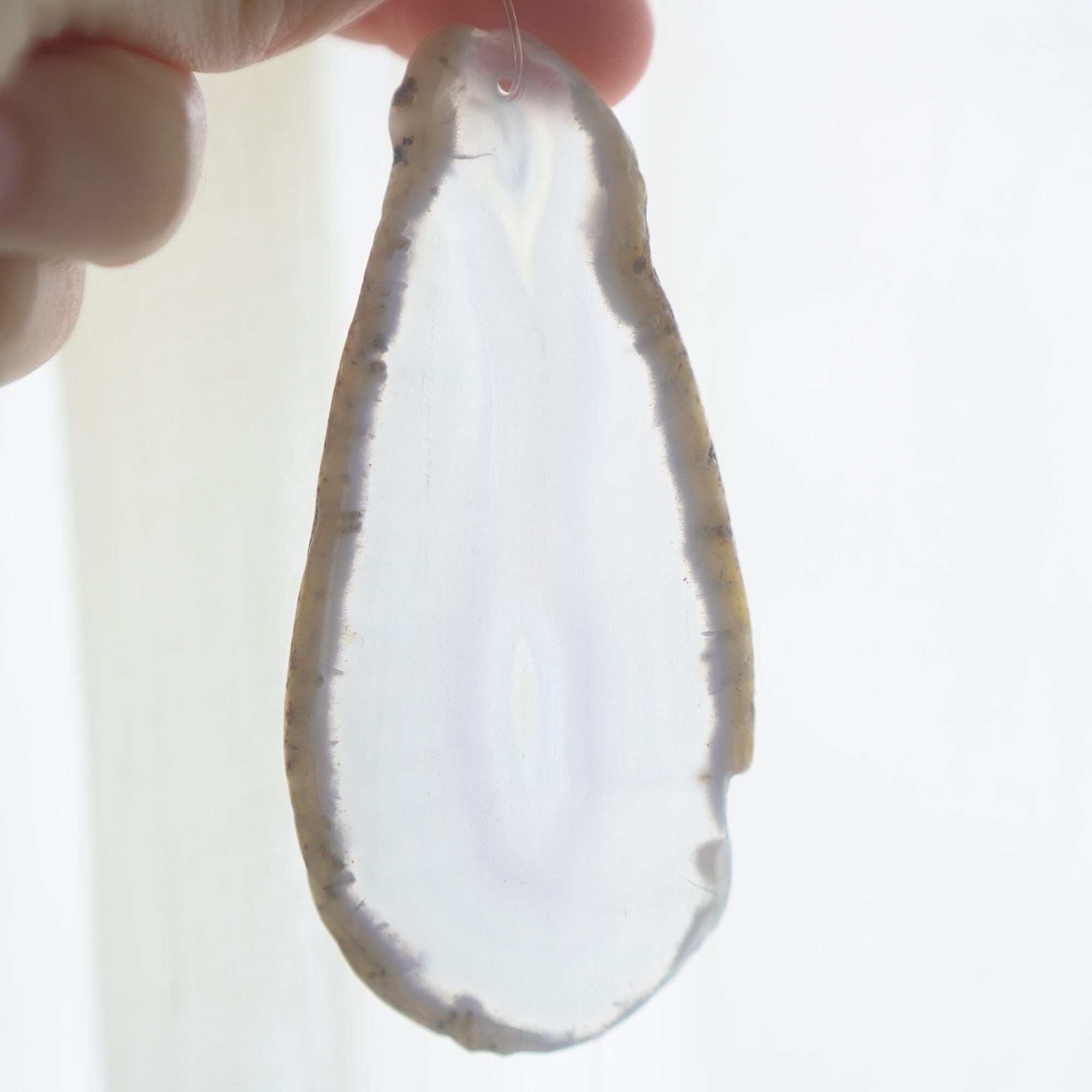 ✧✧✧瑪瑙の濃い色は染色によるもので、水に濡れたり布で擦ると多少色落ちします。飾るものなので大丈夫かと思いますが白いお洋服などには触れないようにされてください。汚れが気になる時は若干の色落ち前提で水を軽く含ませた布やティッシュでやさしく拭いていただくことは大丈夫です。また、画像のような細かなヒビ・カケはスライスメノウの加工上かなり多くあるので、チャイムとしての機能や全体の外観を著しく損なうものを除き、見た目の完璧さ<音色の響き重視で選んで使用しております、よろしくお願い致します✧✧✧