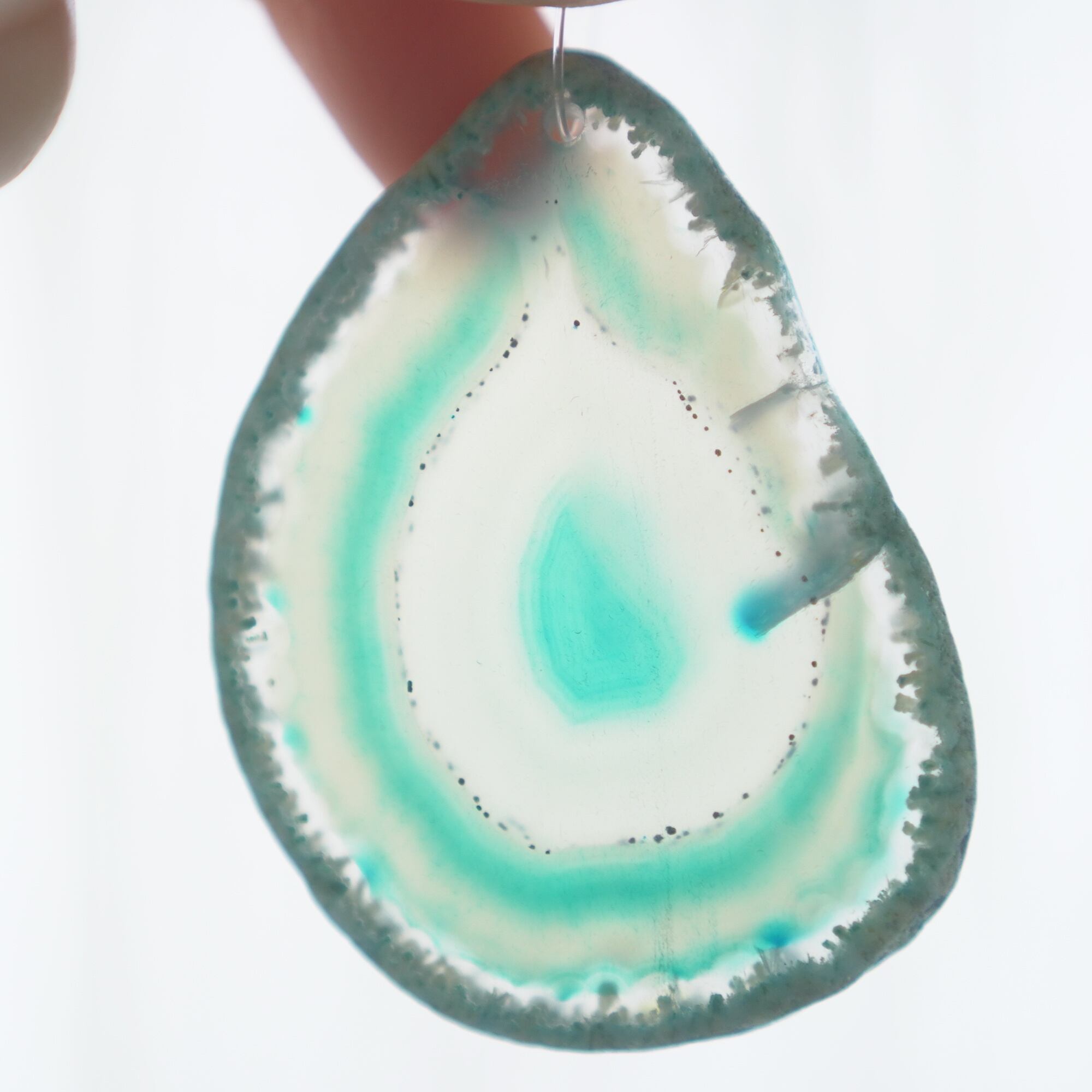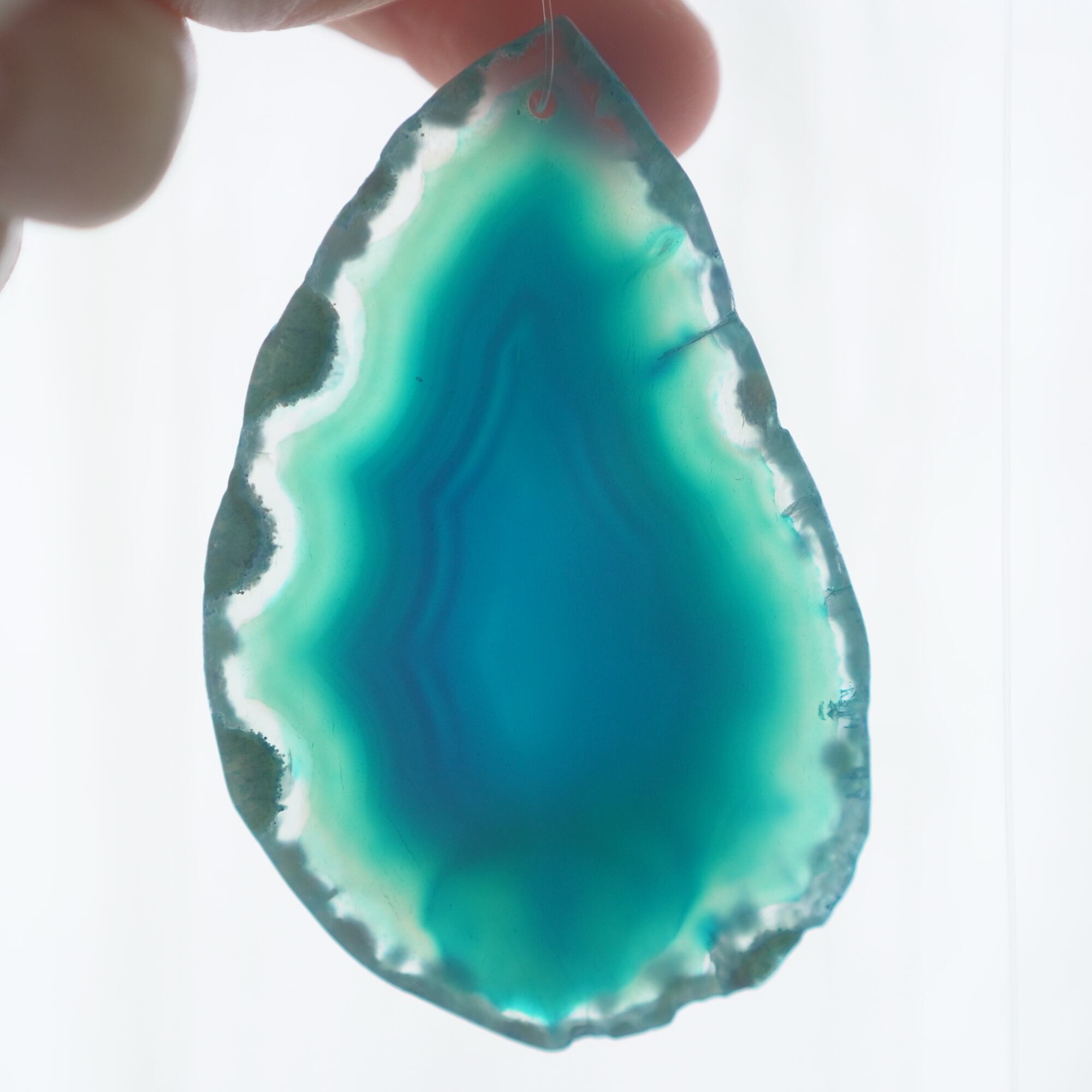 ✧✧✧染色の石なので耐光性(光による経年でのカラー変化の耐性)に優れているわけではなく一日の中で長時間強い日光に当たるような場所に飾られるのはおすすめしないのですが、陽光に透かした時にだけ真価を発揮する美しさがありますので、是非たまに翳したりして光と一緒にお楽しみいただけたらと思っております。特に濃い鮮やかな色など、気になられる場合は、日光のあまり当たらない場所に飾っていただけたらと思います✧✧✧