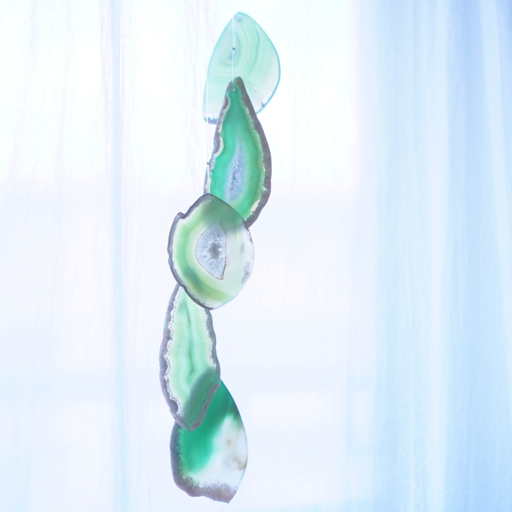 連なるアゲートが風を受けて揺れるとチリンチリン、美しい響きの音が鳴りとても癒されます。