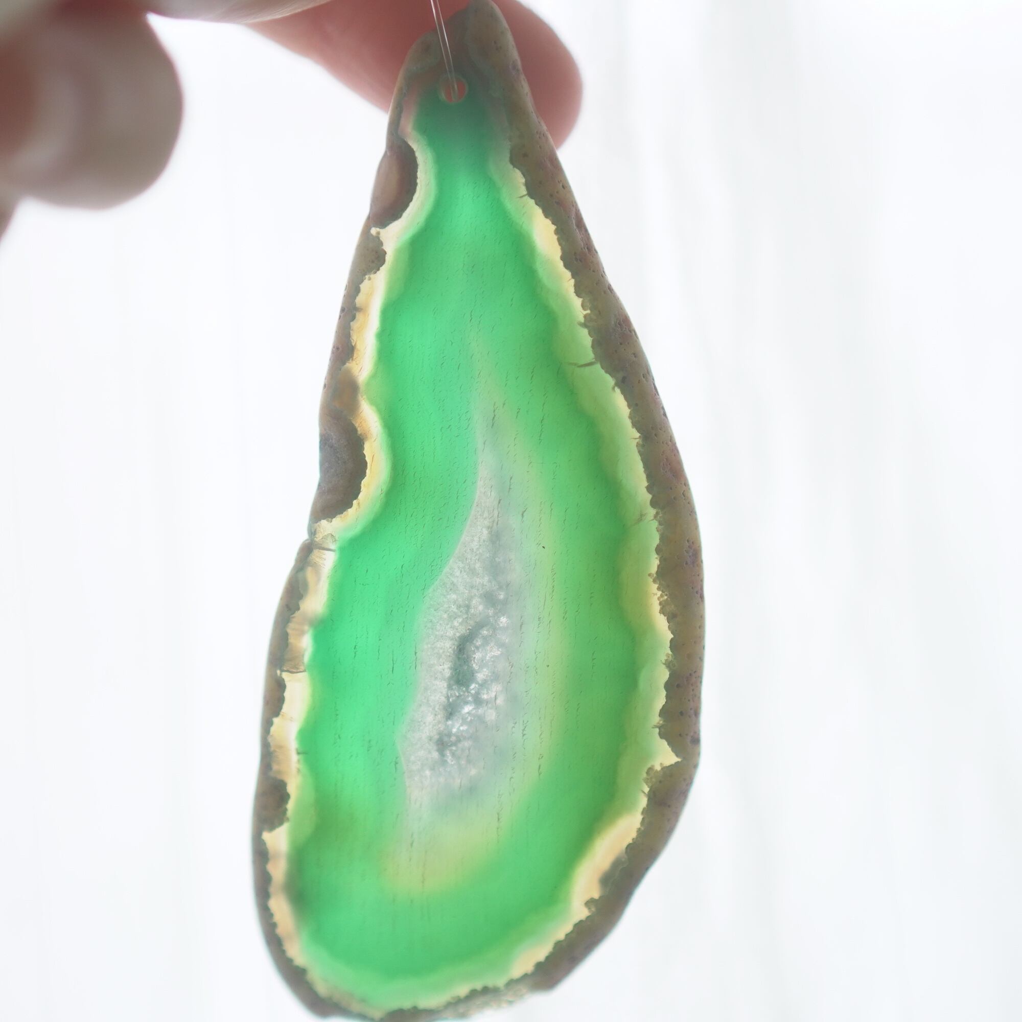 ✧✧✧染色の石なので耐光性(光による経年でのカラー変化の耐性)に優れているわけではなく一日の中で長時間強い日光に当たるような場所に飾られるのはおすすめしないのですが、陽光に透かした時にだけ真価を発揮する美しさがありますので、是非たまに翳したりして光と一緒にお楽しみいただけたらと思っております。特に濃い鮮やかな色など、気になられる場合は、日光のあまり当たらない場所に飾っていただけたらと思います✧✧✧