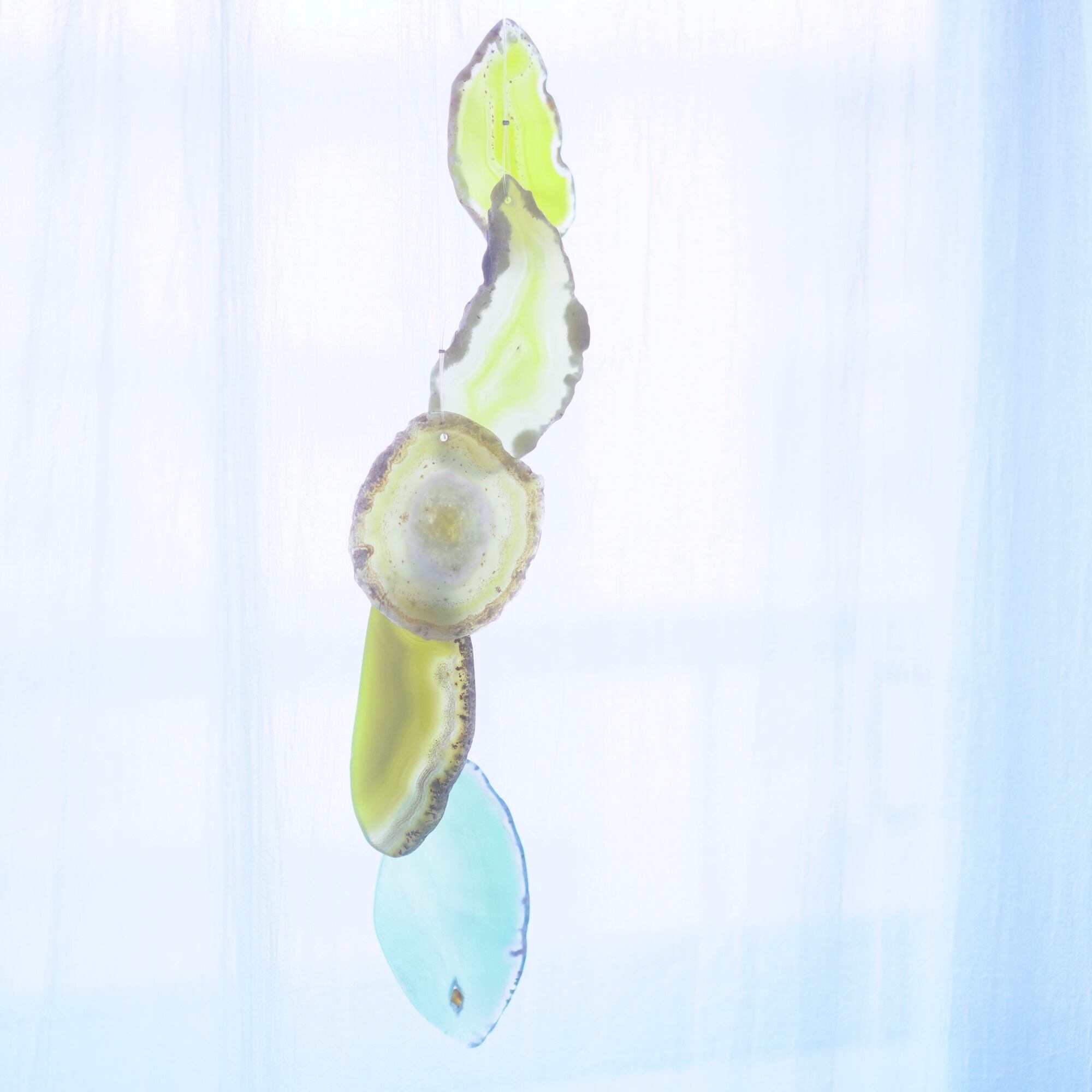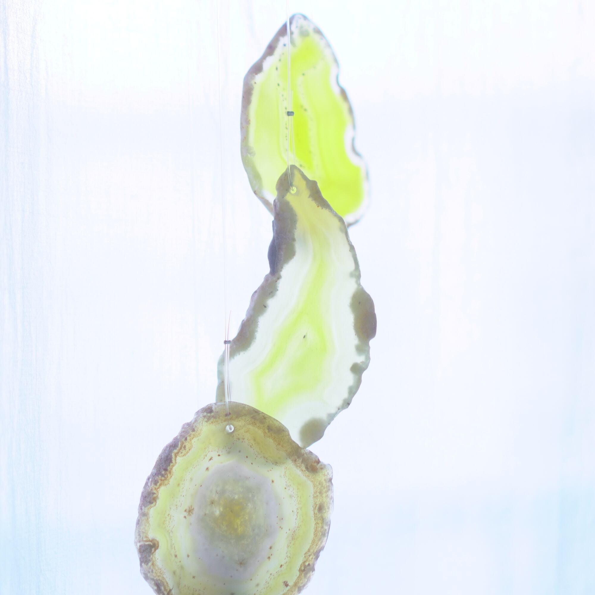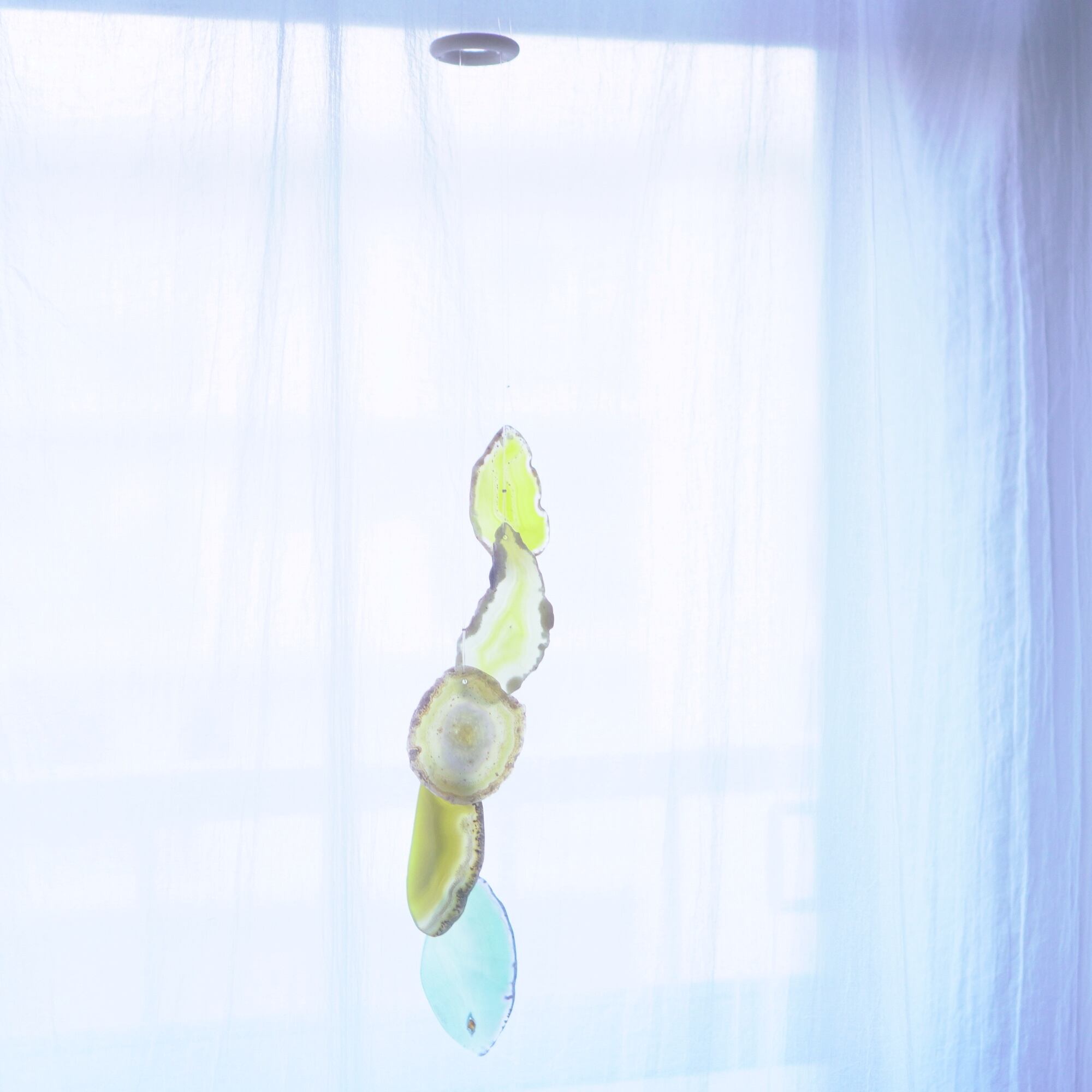 連なるアゲートが風を受けて揺れるとチリンチリン、美しい響きの音が鳴りとても癒されます。