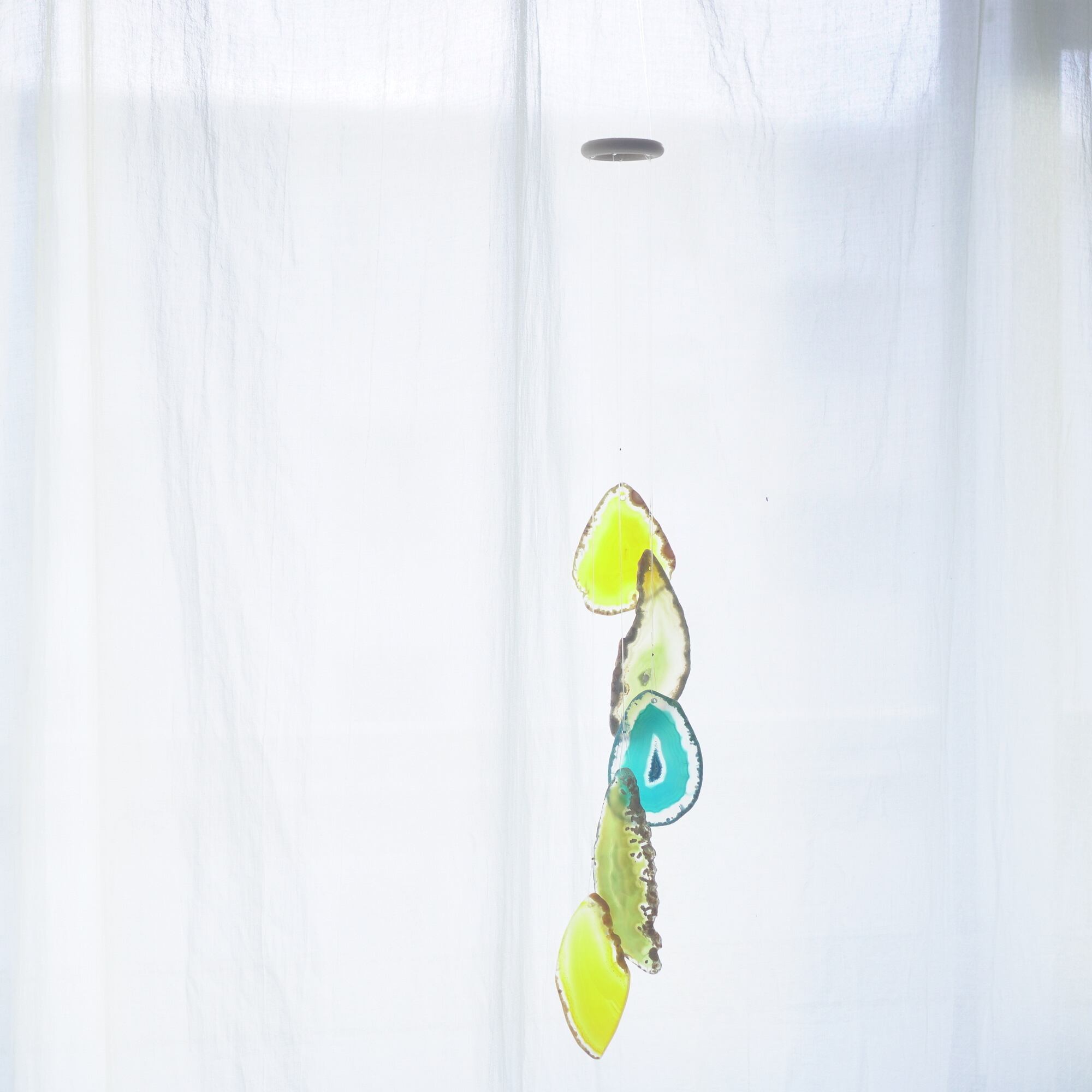 連なるアゲートが風を受けて揺れるとチリンチリン、美しい響きの音が鳴りとても癒されます。
