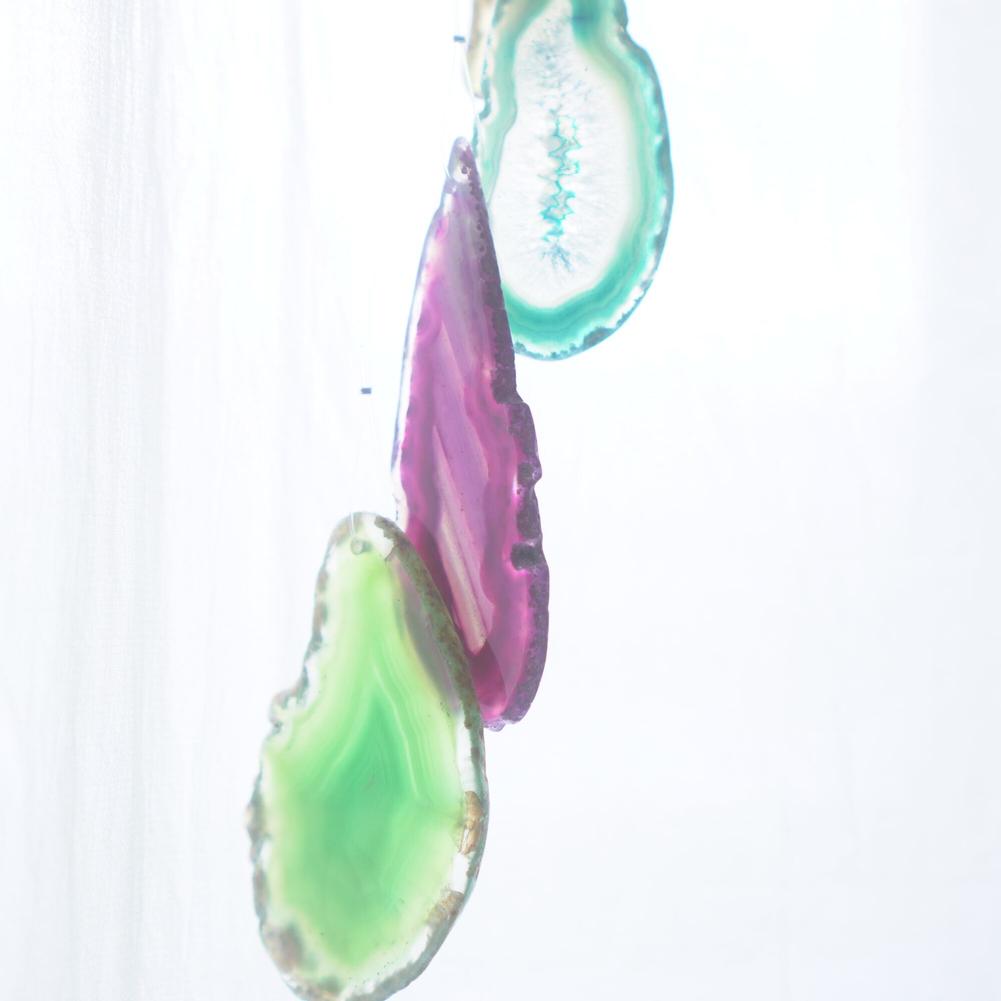連なるアゲートが風を受けて揺れるとチリンチリン、美しい響きの音が鳴りとても癒されます。