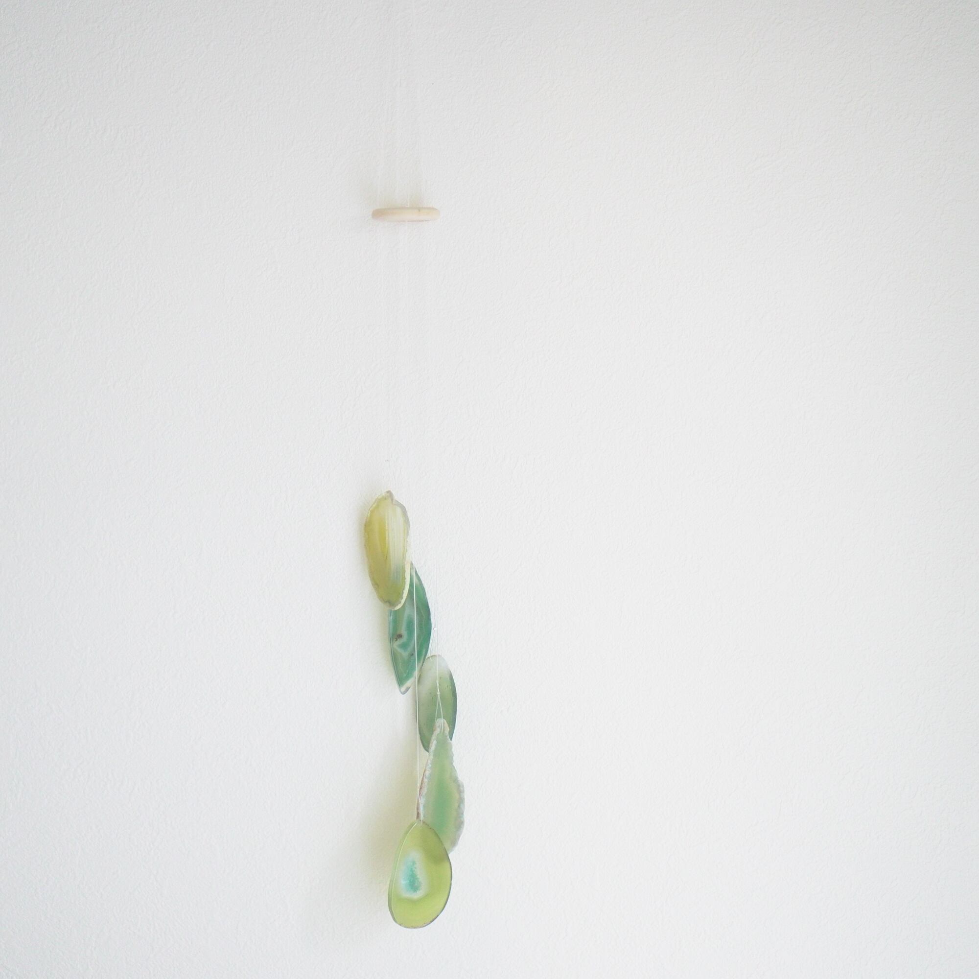 連なるアゲートが風を受けて揺れるとチリンチリン、美しい響きの音が鳴りとても癒されます。