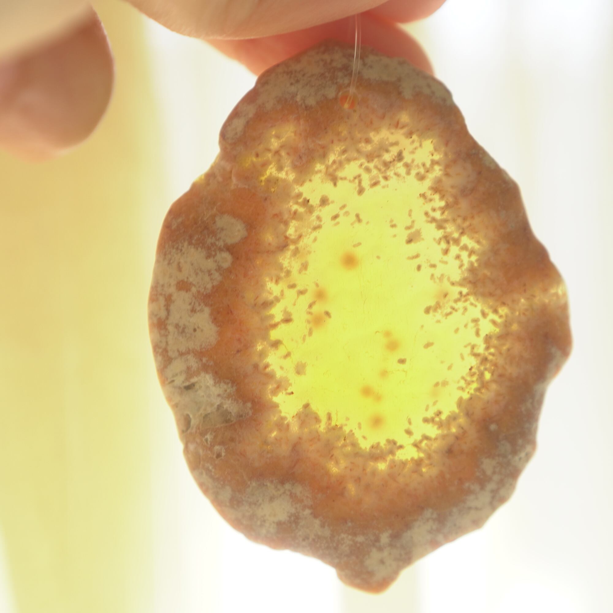 ✧✧✧染色の石なので耐光性(光による経年でのカラー変化の耐性)に優れているわけではなく一日の中で長時間強い日光に当たるような場所に飾られるのはおすすめしないのですが、陽光に透かした時にだけ真価を発揮する美しさがありますので、是非たまに翳したりして光と一緒にお楽しみいただけたらと思っております。特に濃い鮮やかな色など、気になられる場合は、日光のあまり当たらない場所に飾っていただけたらと思います✧✧✧