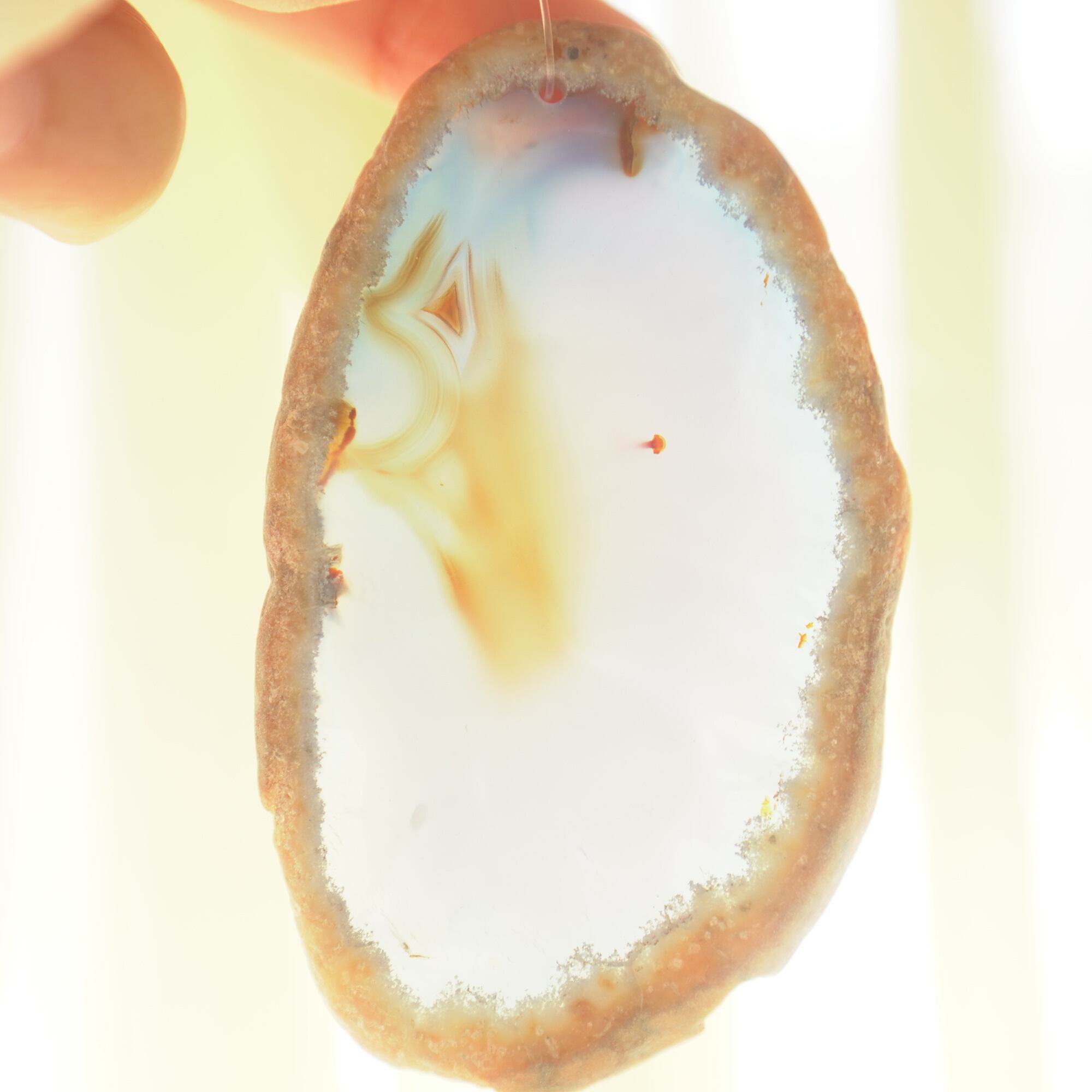 Agate Slice , Natural Wood , Nylon Cord , Metal