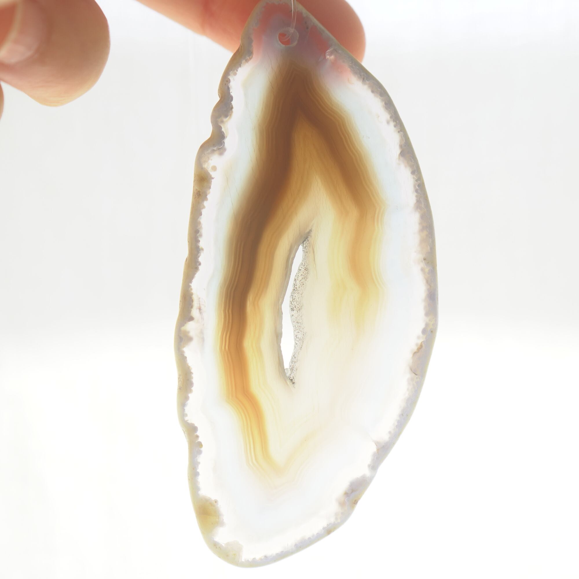 Agate Slice , Natural Wood , Nylon Cord , Metal
