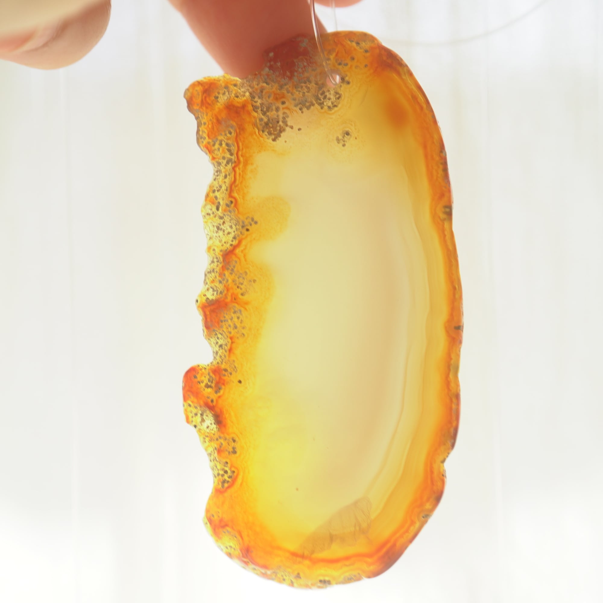 ✧✧✧瑪瑙の濃い色は染色によるもので、水に濡れたり布で擦ると多少色落ちします。飾るものなので大丈夫かと思いますが白いお洋服などには触れないようにされてください。汚れが気になる時は若干の色落ち前提で水を軽く含ませた布やティッシュでやさしく拭いていただくことは大丈夫です。また、画像のような細かなヒビ・カケはスライスメノウの加工上かなり多くあるので、チャイムとしての機能や全体の外観を著しく損なうものを除き、見た目の完璧さ<音色の響き重視で選んで使用しております、よろしくお願い致します✧✧✧