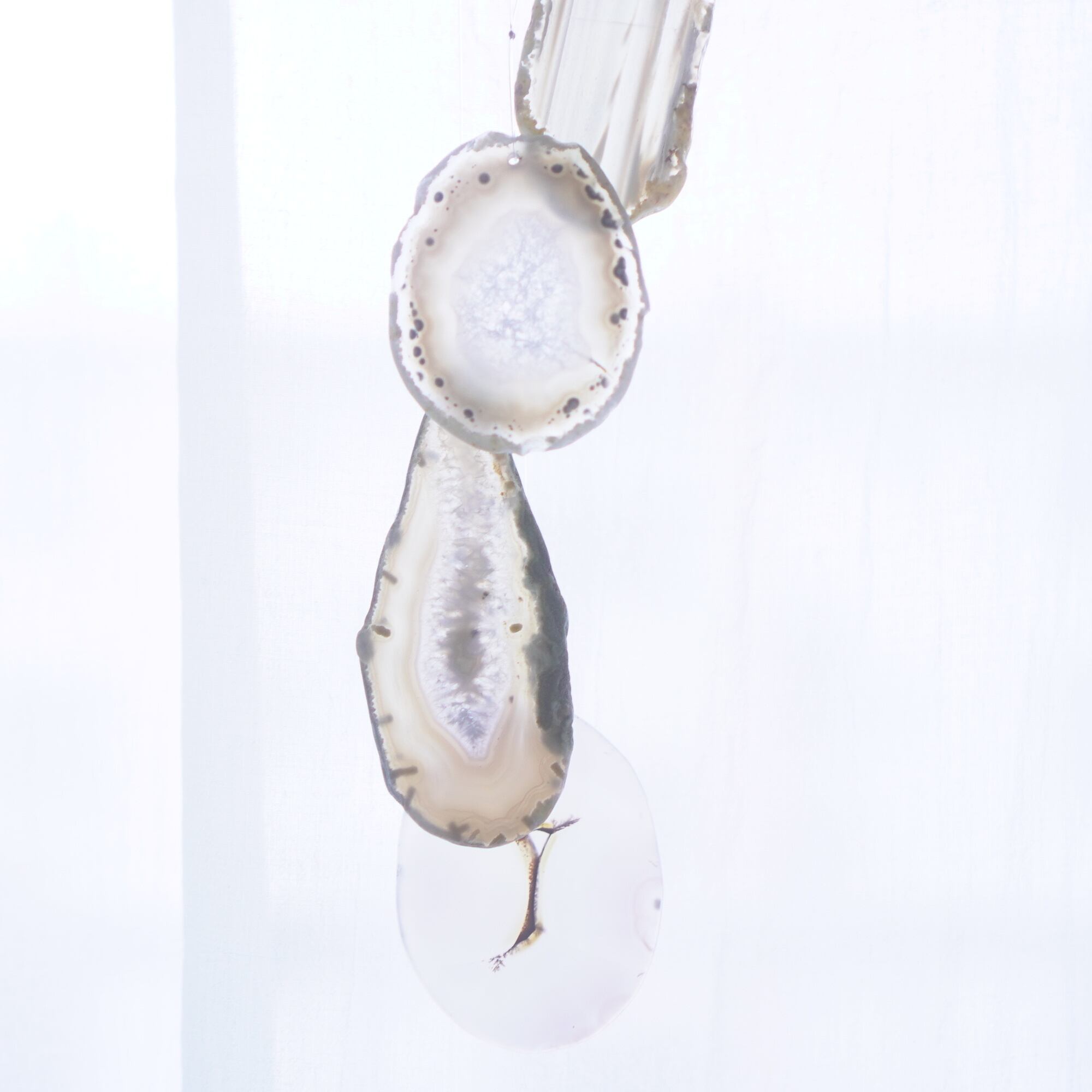 連なるアゲートが風を受けて揺れるとチリンチリン、美しい響きの音が鳴りとても癒されます。