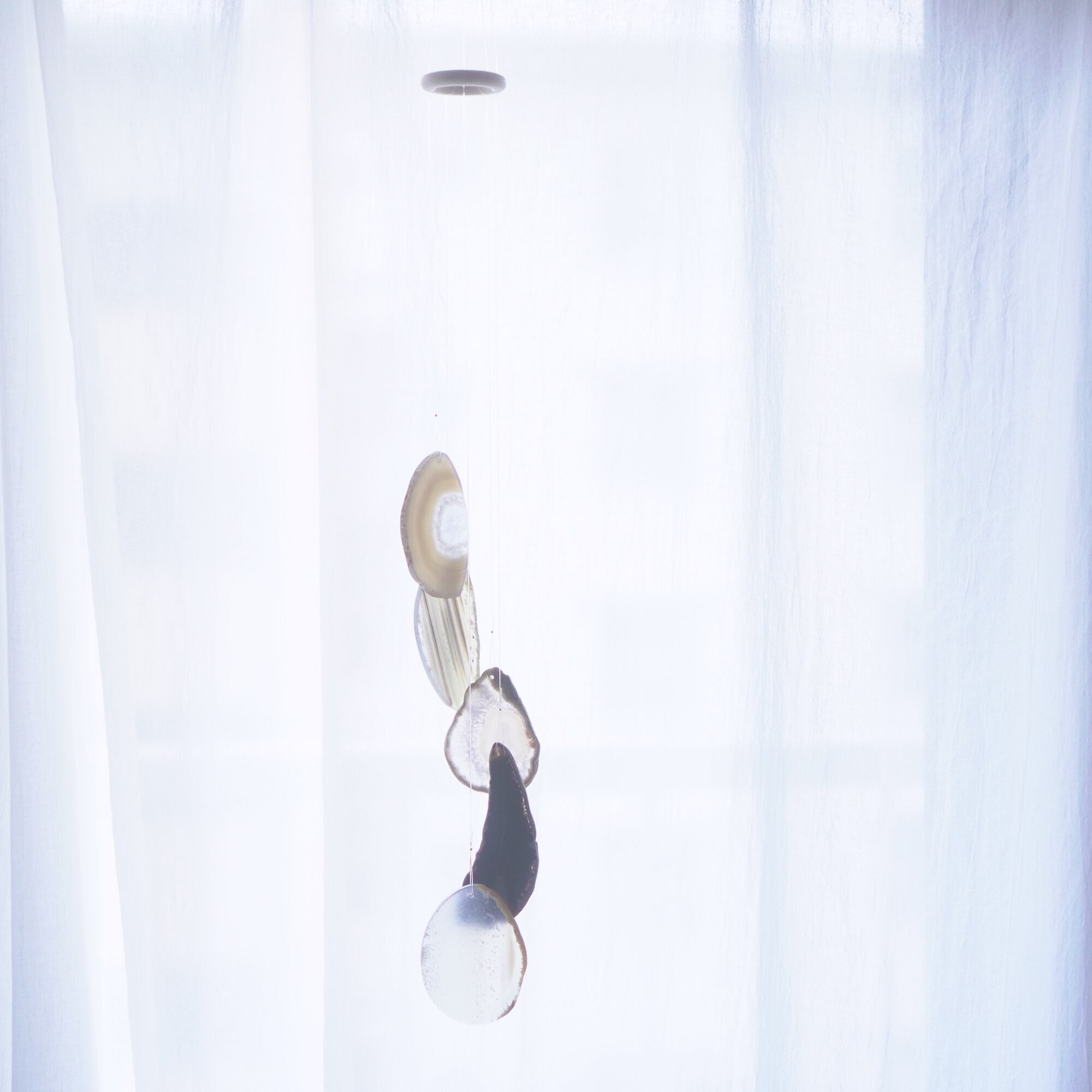 連なるアゲートが風を受けて揺れるとチリンチリン、美しい響きの音が鳴りとても癒されます。