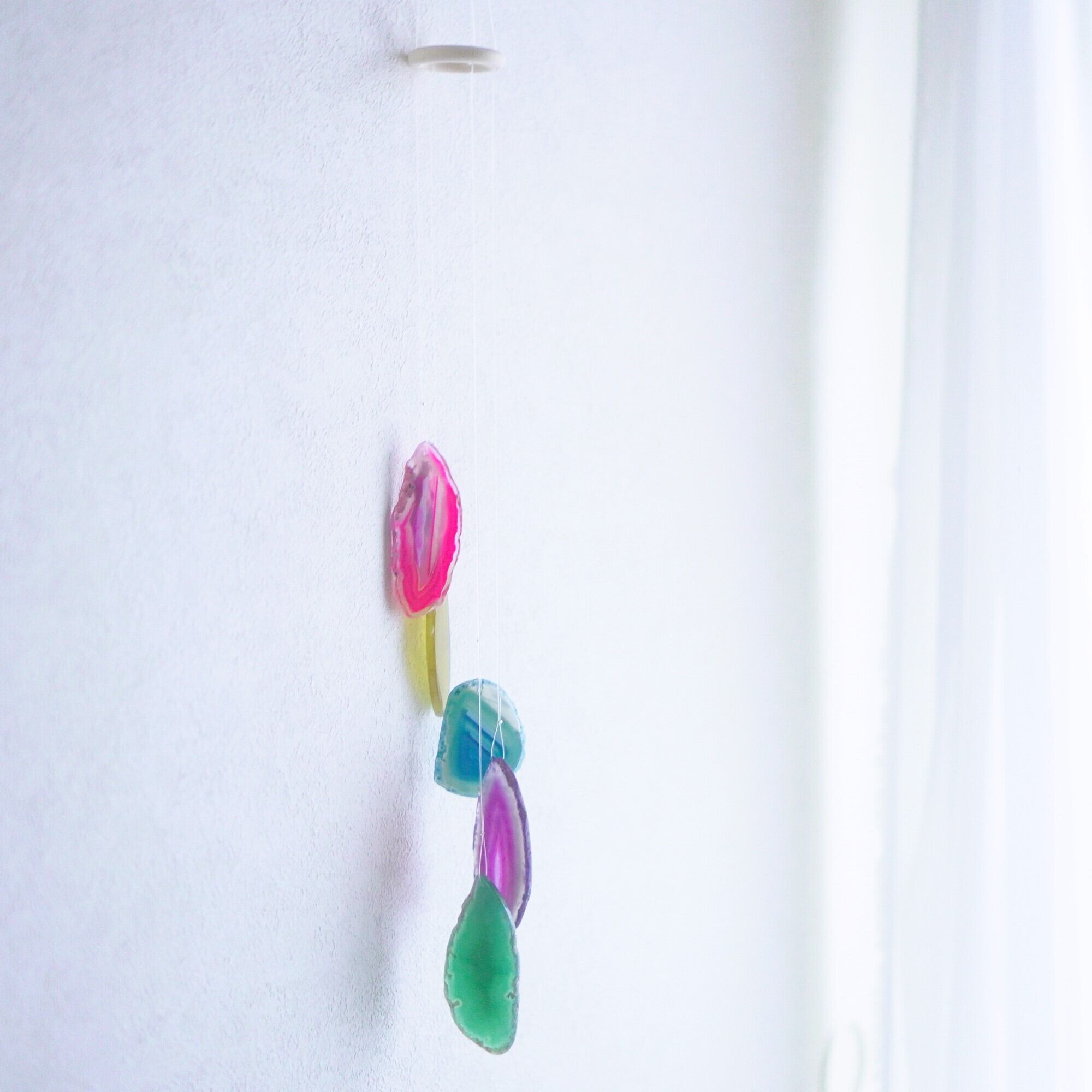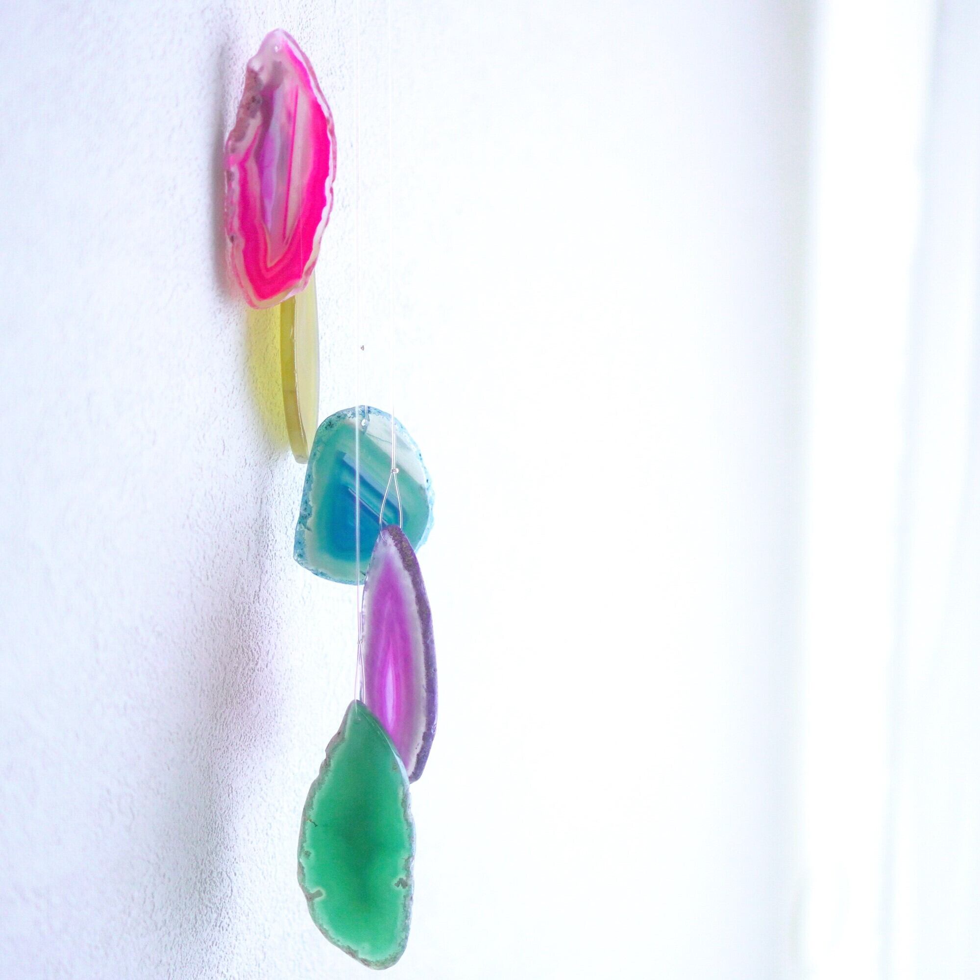 連なるアゲートが風を受けて揺れるとチリンチリン、美しい響きの音が鳴りとても癒されます。
