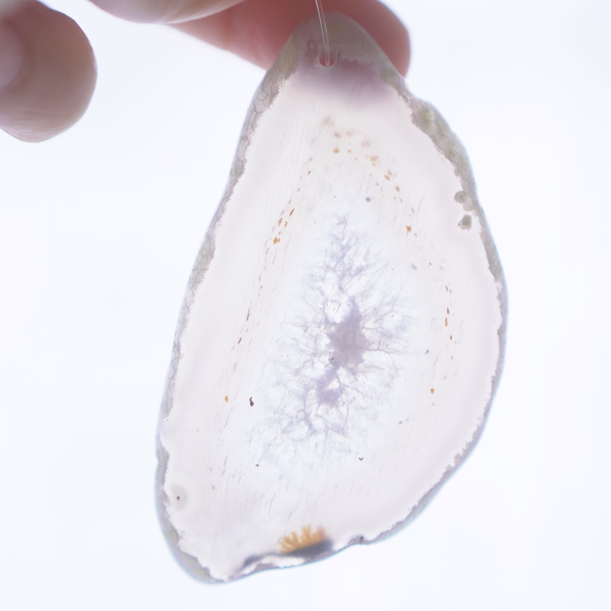 ✧✧✧瑪瑙の濃い色は染色によるもので、水に濡れたり布で擦ると多少色落ちします。飾るものなので大丈夫かと思いますが白いお洋服などには触れないようにされてください。汚れが気になる時は若干の色落ち前提で水を軽く含ませた布やティッシュでやさしく拭いていただくことは大丈夫です。また、画像のような細かなヒビ・カケはスライスメノウの加工上かなり多くあるので、チャイムとしての機能や全体の外観を著しく損なうものを除き、見た目の完璧さ<音色の響き重視で選んで使用しております、よろしくお願い致します✧✧✧