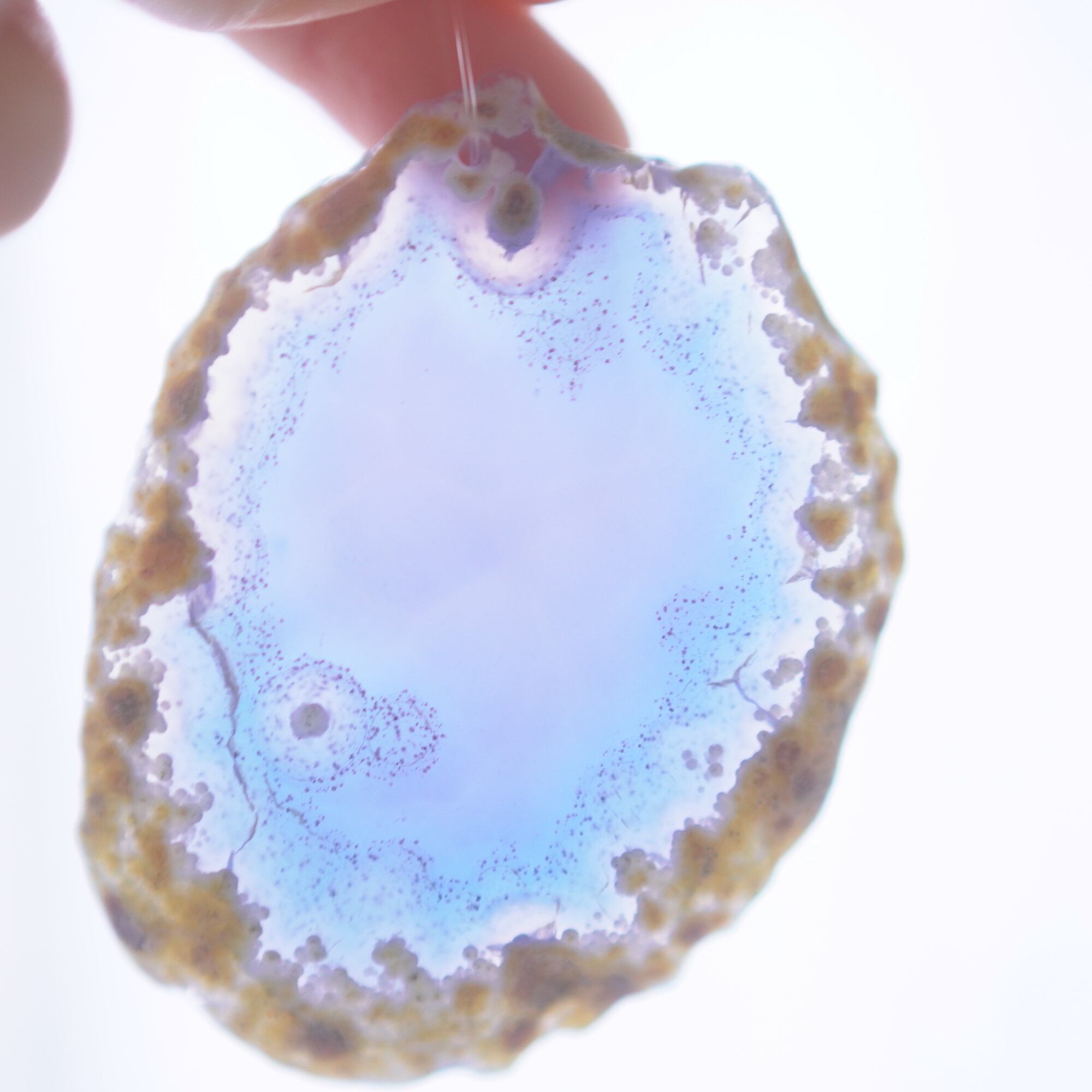 ✧✧✧染色の石なので耐光性(光による経年でのカラー変化の耐性)に優れているわけではなく一日の中で長時間強い日光に当たるような場所に飾られるのはおすすめしないのですが、陽光に透かした時にだけ真価を発揮する美しさがありますので、是非たまに翳したりして光と一緒にお楽しみいただけたらと思っております。特に濃い鮮やかな色など、気になられる場合は、日光のあまり当たらない場所に飾っていただけたらと思います✧✧✧