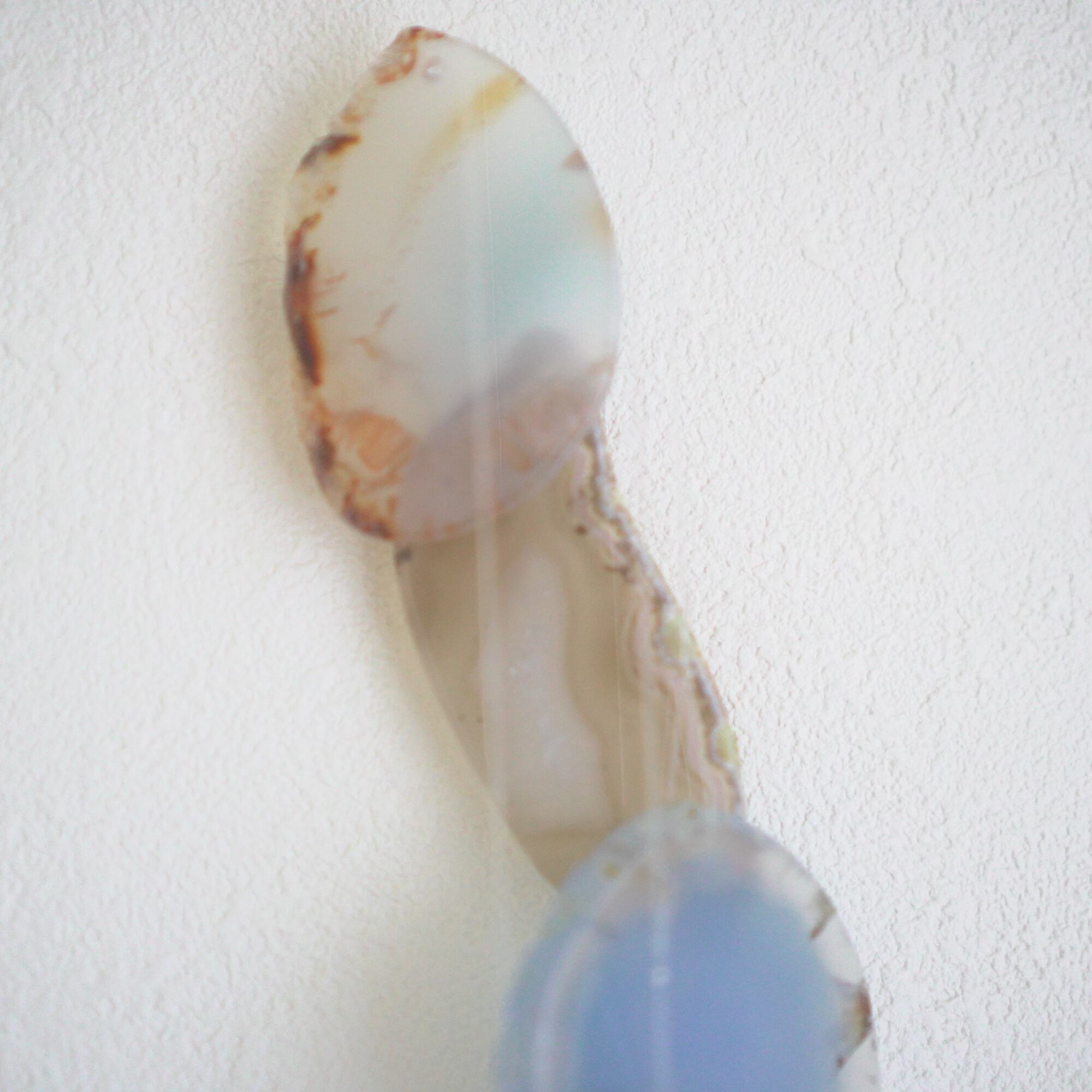 ✧✧✧瑪瑙の濃い色は染色によるもので、水に濡れたり布で擦ると多少色落ちします。飾るものなので大丈夫かと思いますが白いお洋服などには触れないようにされてください。汚れが気になる時は若干の色落ち前提で水を軽く含ませた布やティッシュでやさしく拭いていただくことは大丈夫です。また、画像のような細かなヒビ・カケはスライスメノウの加工上かなり多くあるので、チャイムとしての機能や全体の外観を著しく損なうものを除き、見た目の完璧さ<音色の響き重視で選んで使用しております、よろしくお願い致します✧✧✧