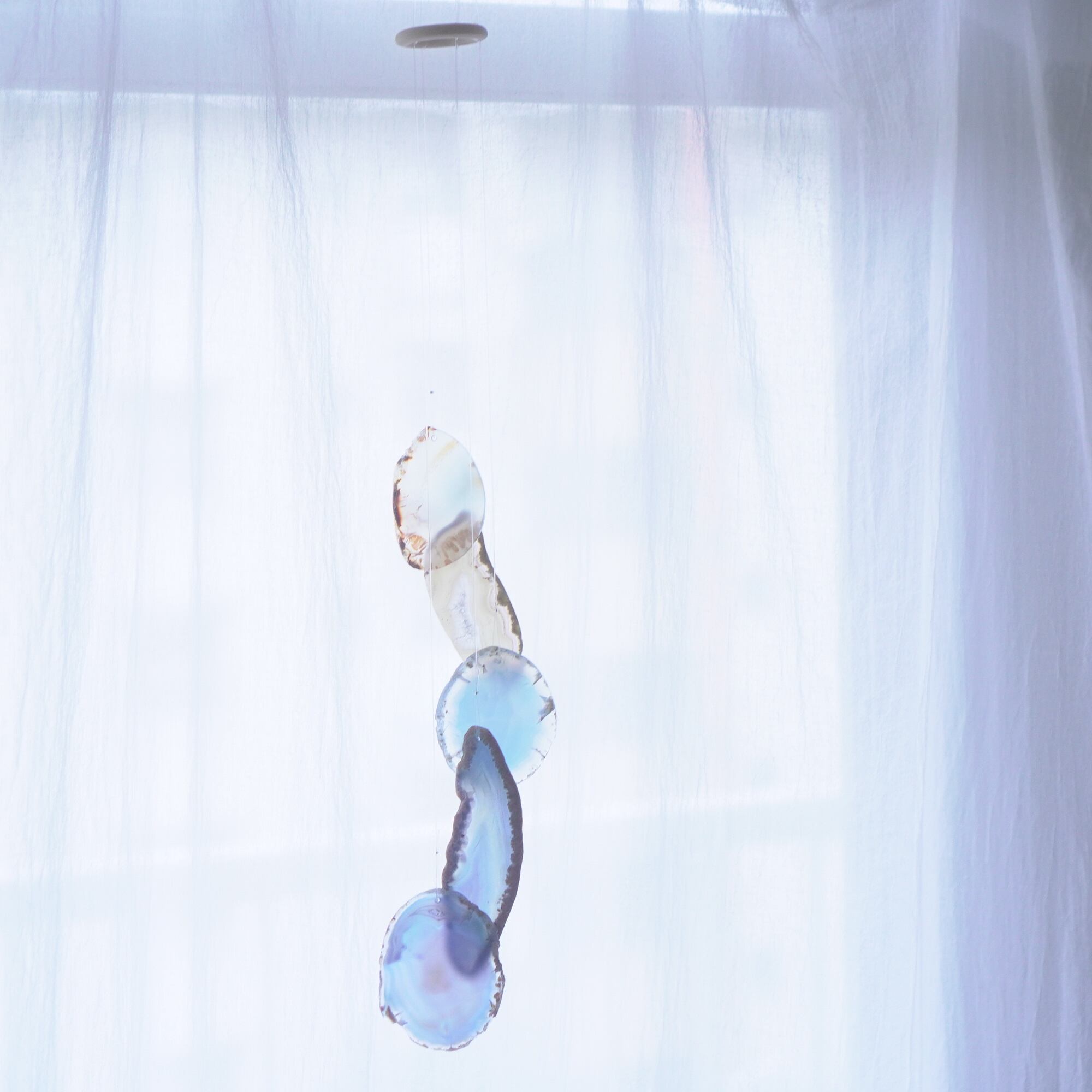 連なるアゲートが風を受けて揺れるとチリンチリン、美しい響きの音が鳴りとても癒されます。