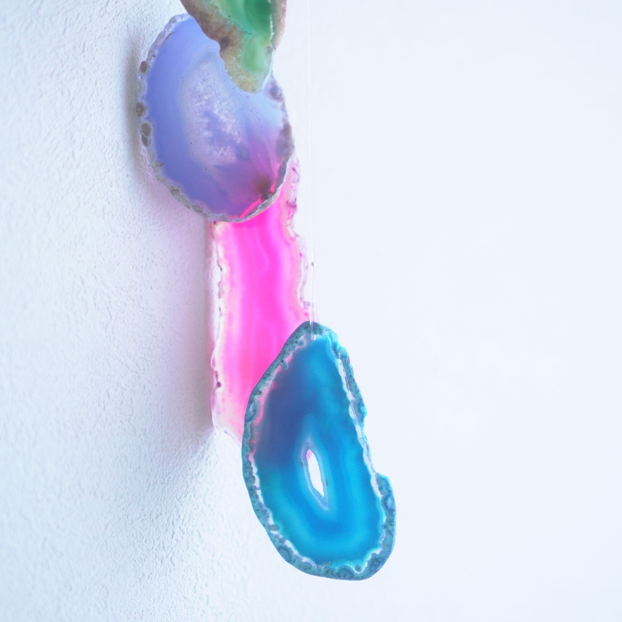 ✧✧✧染色の石なので耐光性(光による経年でのカラー変化の耐性)に優れているわけではなく一日の中で長時間強い日光に当たるような場所に飾られるのはおすすめしないのですが、陽光に透かした時にだけ真価を発揮する美しさがありますので、是非たまに翳したりして光と一緒にお楽しみいただけたらと思っております。特に濃い鮮やかな色など、気になられる場合は、日光のあまり当たらない場所に飾っていただけたらと思います✧✧✧