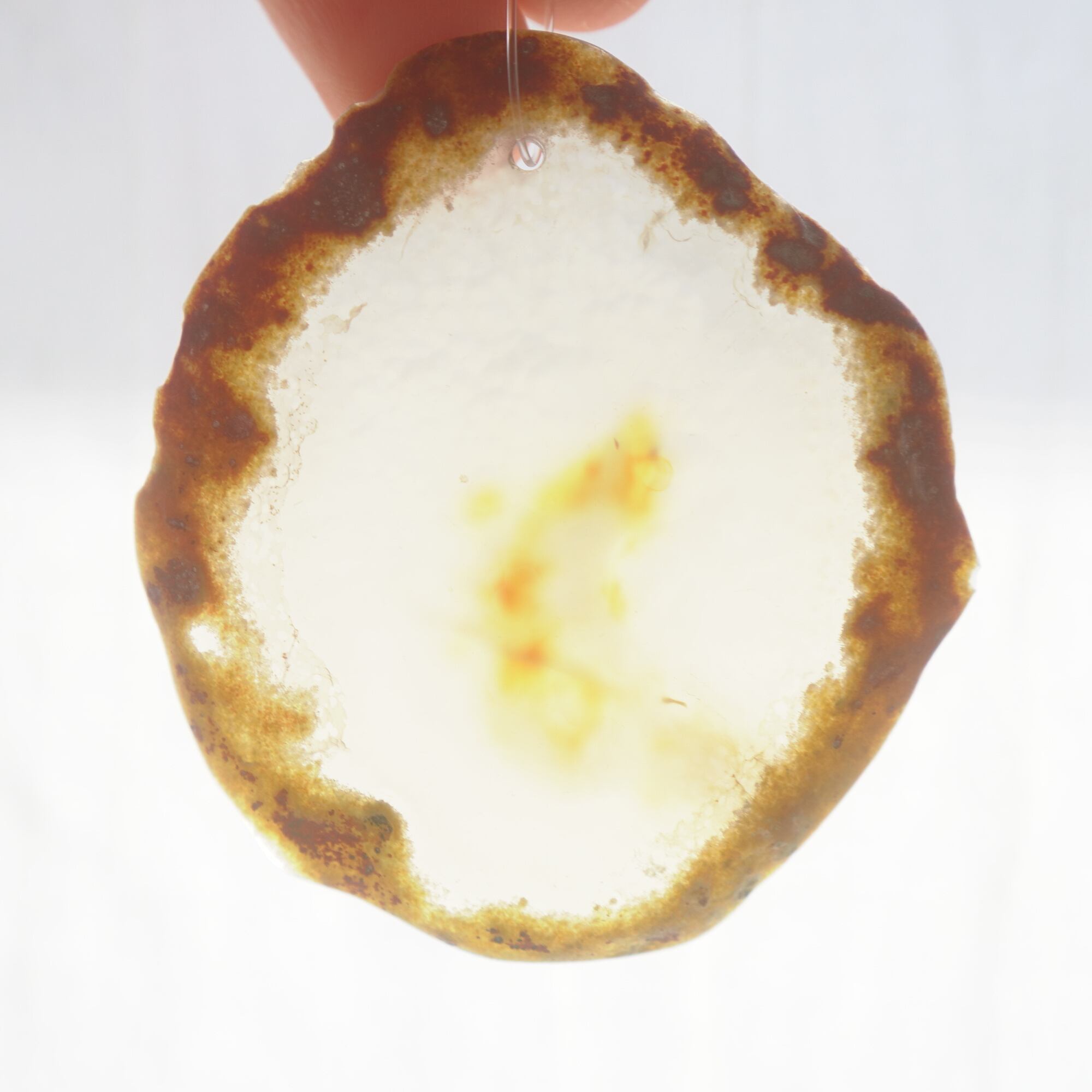 ✧✧✧瑪瑙の濃い色は染色によるもので、水に濡れたり布で擦ると多少色落ちします。飾るものなので大丈夫かと思いますが白いお洋服などには触れないようにされてください。汚れが気になる時は若干の色落ち前提で水を軽く含ませた布やティッシュでやさしく拭いていただくことは大丈夫です。また、画像のような細かなヒビ・カケはスライスメノウの加工上かなり多くあるので、チャイムとしての機能や全体の外観を著しく損なうものを除き、見た目の完璧さ<音色の響き重視で選んで使用しております、よろしくお願い致します✧✧✧