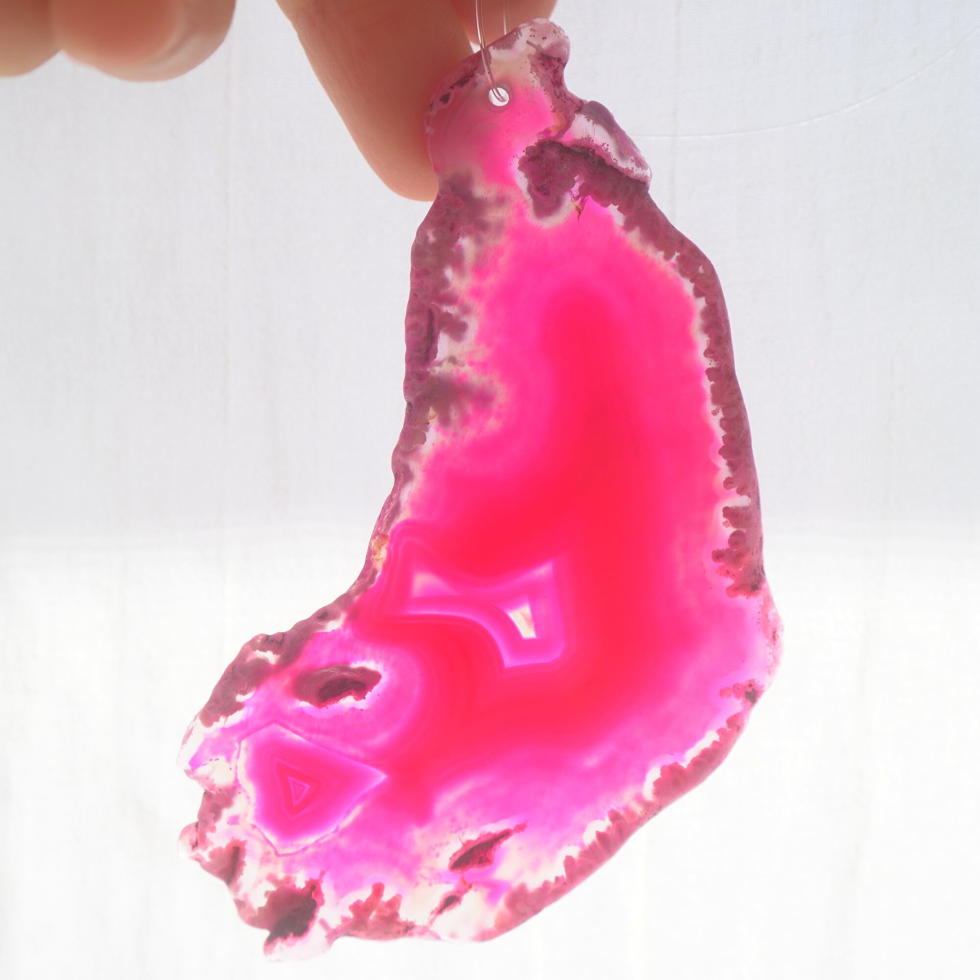✧✧✧染色の石なので耐光性(光による経年でのカラー変化の耐性)に優れているわけではなく一日の中で長時間強い日光に当たるような場所に飾られるのはおすすめしないのですが、陽光に透かした時にだけ真価を発揮する美しさがありますので、是非たまに翳したりして光と一緒にお楽しみいただけたらと思っております。特に濃い鮮やかな色など、気になられる場合は、日光のあまり当たらない場所に飾っていただけたらと思います✧✧✧