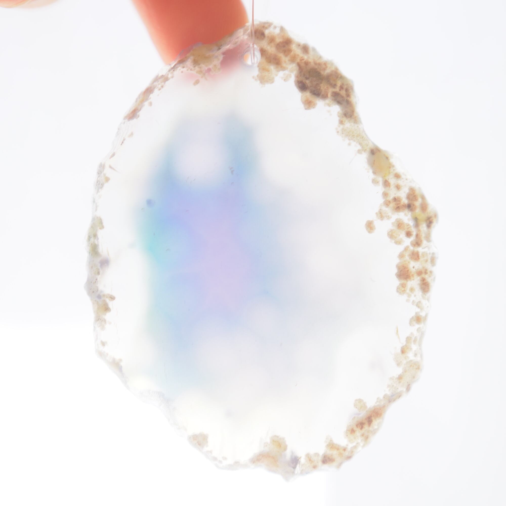 また、透明感が魅力でもあるので、窓際で自然光を通した際と、室内灯の下で光を通さずに見る際、異なる表情を見せてくれますのでその違いも是非お楽しみください。(写真の前半は自然光を透かせたもので、後半の4枚は光を透かさず壁を背景に撮影したものです)