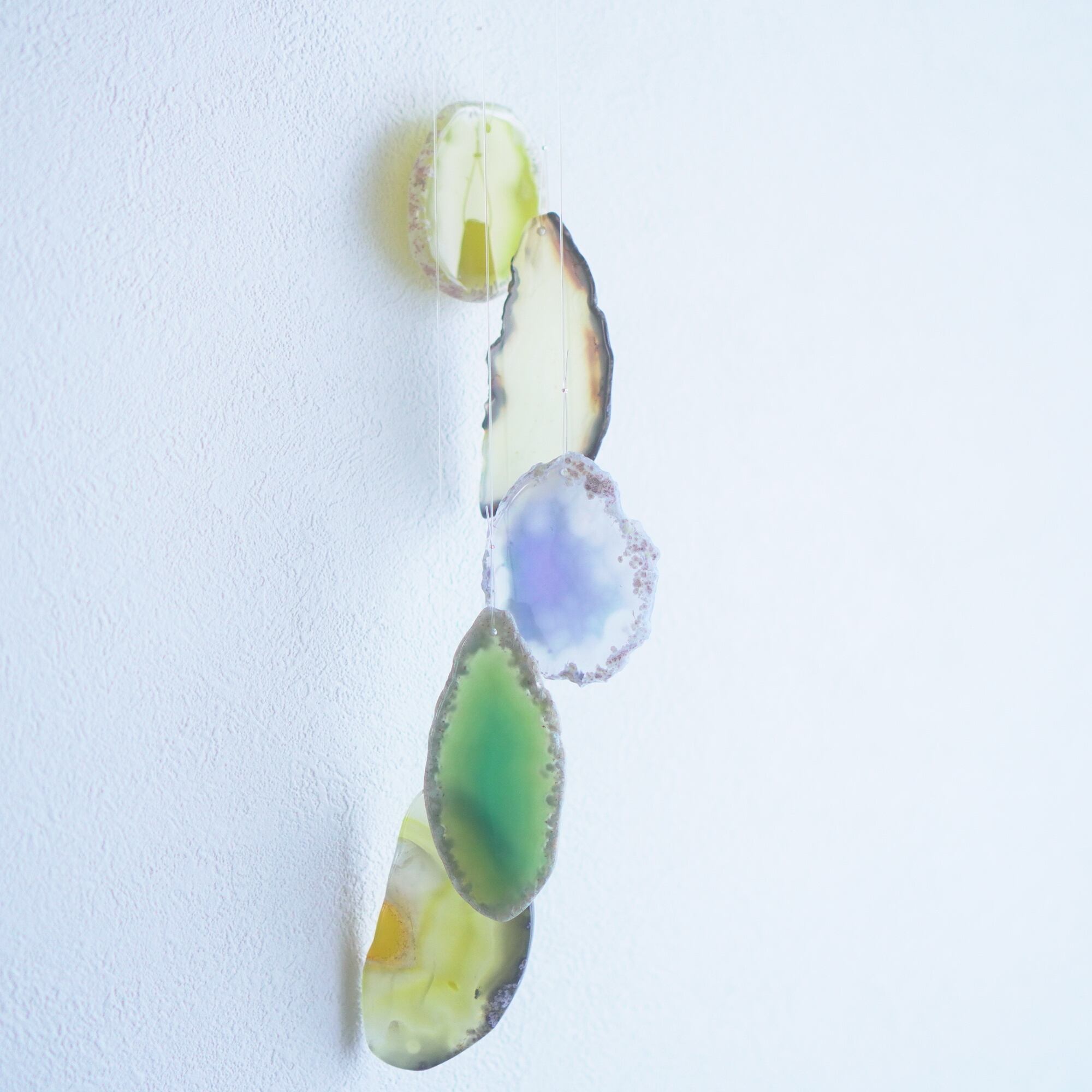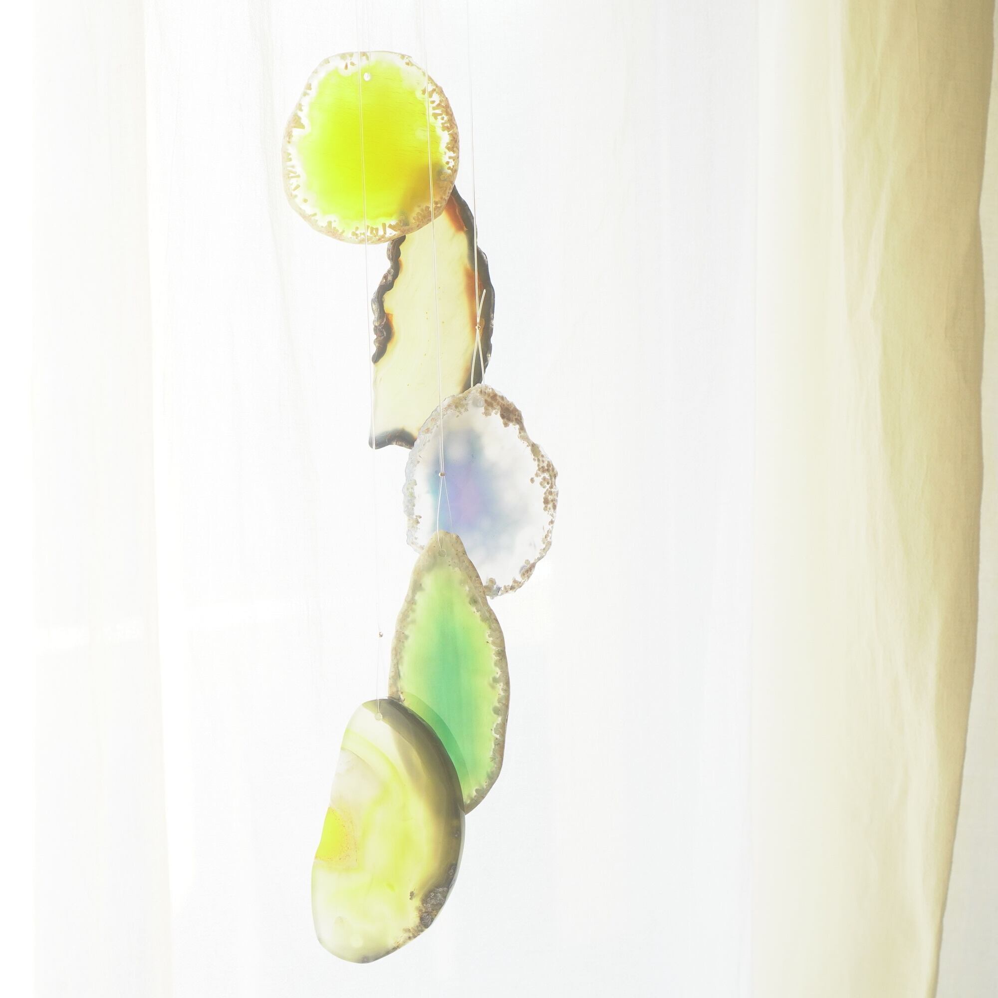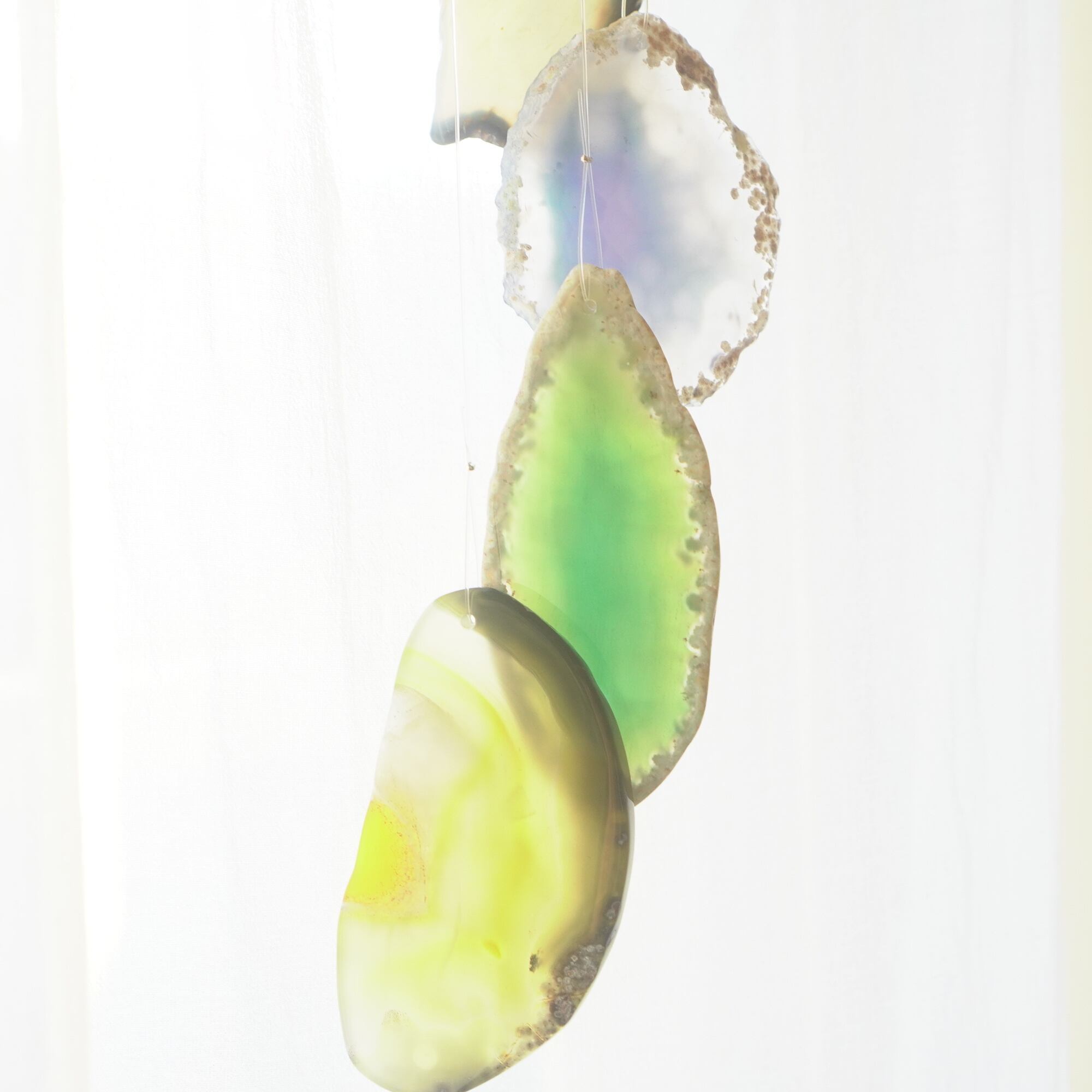 連なるアゲートが風を受けて揺れるとチリンチリン、美しい響きの音が鳴りとても癒されます。