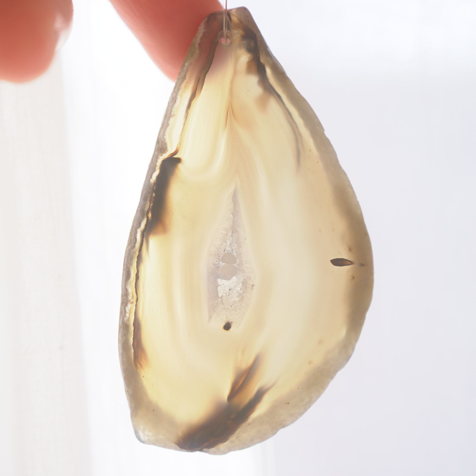 Agate Slice , Natural Wood , Nylon Cord , Metal