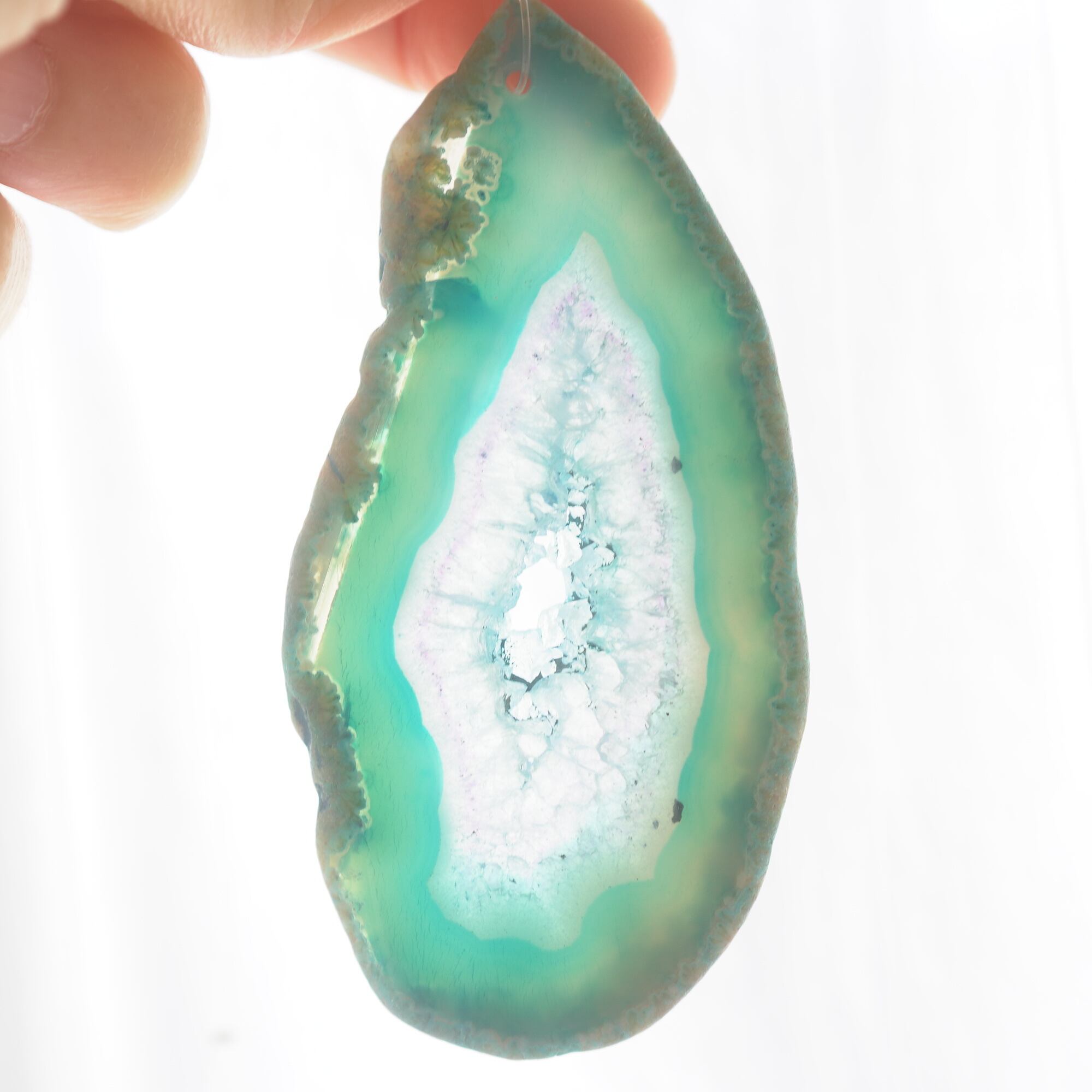 Agate Slice , Natural Wood , Nylon Cord , Metal