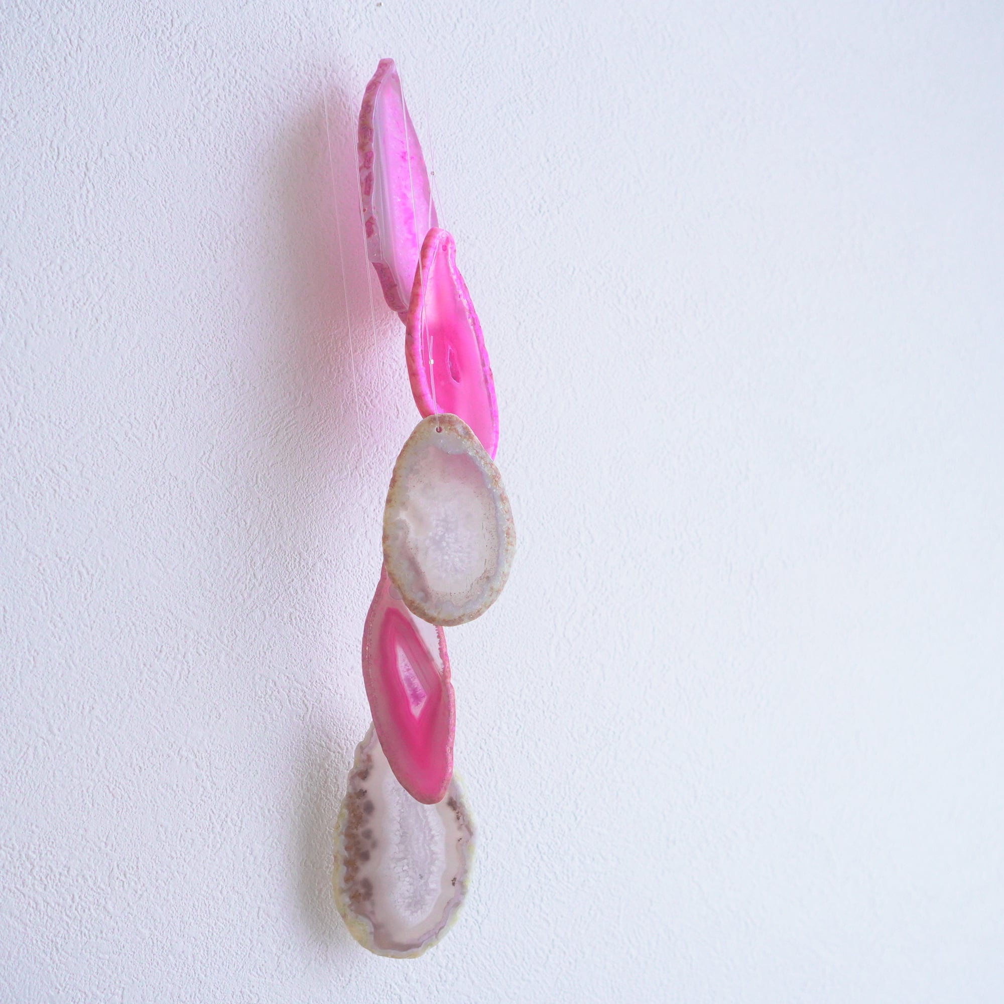 ✧✧✧瑪瑙の濃い色は染色によるもので、水に濡れたり布で擦ると多少色落ちします。飾るものなので大丈夫かと思いますが白いお洋服などには触れないようにされてください。汚れが気になる時は若干の色落ち前提で水を軽く含ませた布やティッシュでやさしく拭いていただくことは大丈夫です。また、画像のような細かなヒビ・カケはスライスメノウの加工上かなり多くあるので、チャイムとしての機能や全体の外観を著しく損なうものを除き、見た目の完璧さ<音色の響き重視で選んで使用しております、よろしくお願い致します✧✧✧