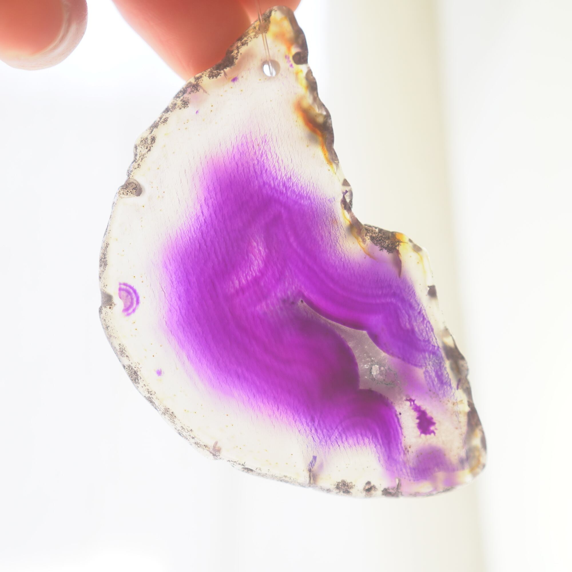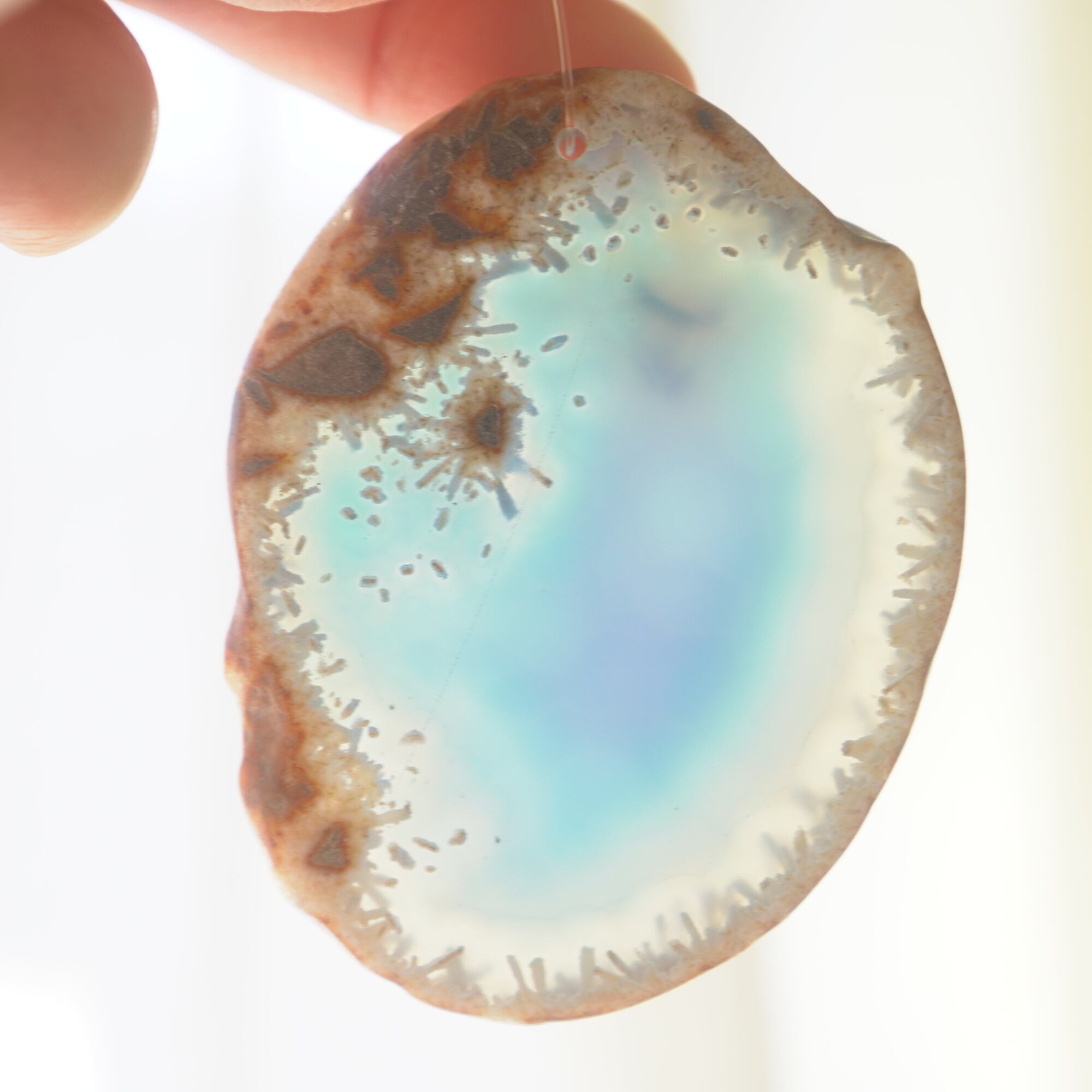 ✧✧✧染色の石なので耐光性(光による経年でのカラー変化の耐性)に優れているわけではなく一日の中で長時間強い日光に当たるような場所に飾られるのはおすすめしないのですが、陽光に透かした時にだけ真価を発揮する美しさがありますので、是非たまに翳したりして光と一緒にお楽しみいただけたらと思っております。特に濃い鮮やかな色など、気になられる場合は、日光のあまり当たらない場所に飾っていただけたらと思います✧✧✧